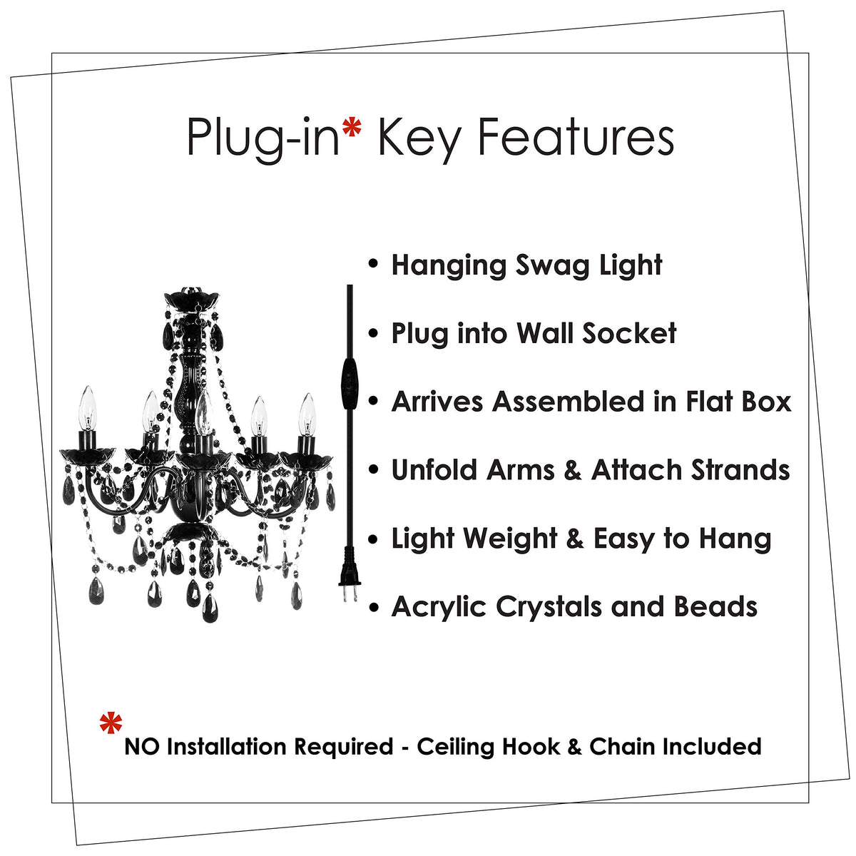 - **Effortless Assembly**: Unfold the arms, position the cups, connect the strands, and it’s ready to shine. All components and clear installation instructions are included for a hassle-free experience. Requires E12 chandelier bulbs (not included) and comes with a 16-foot cord that plugs directly into a wall socket.