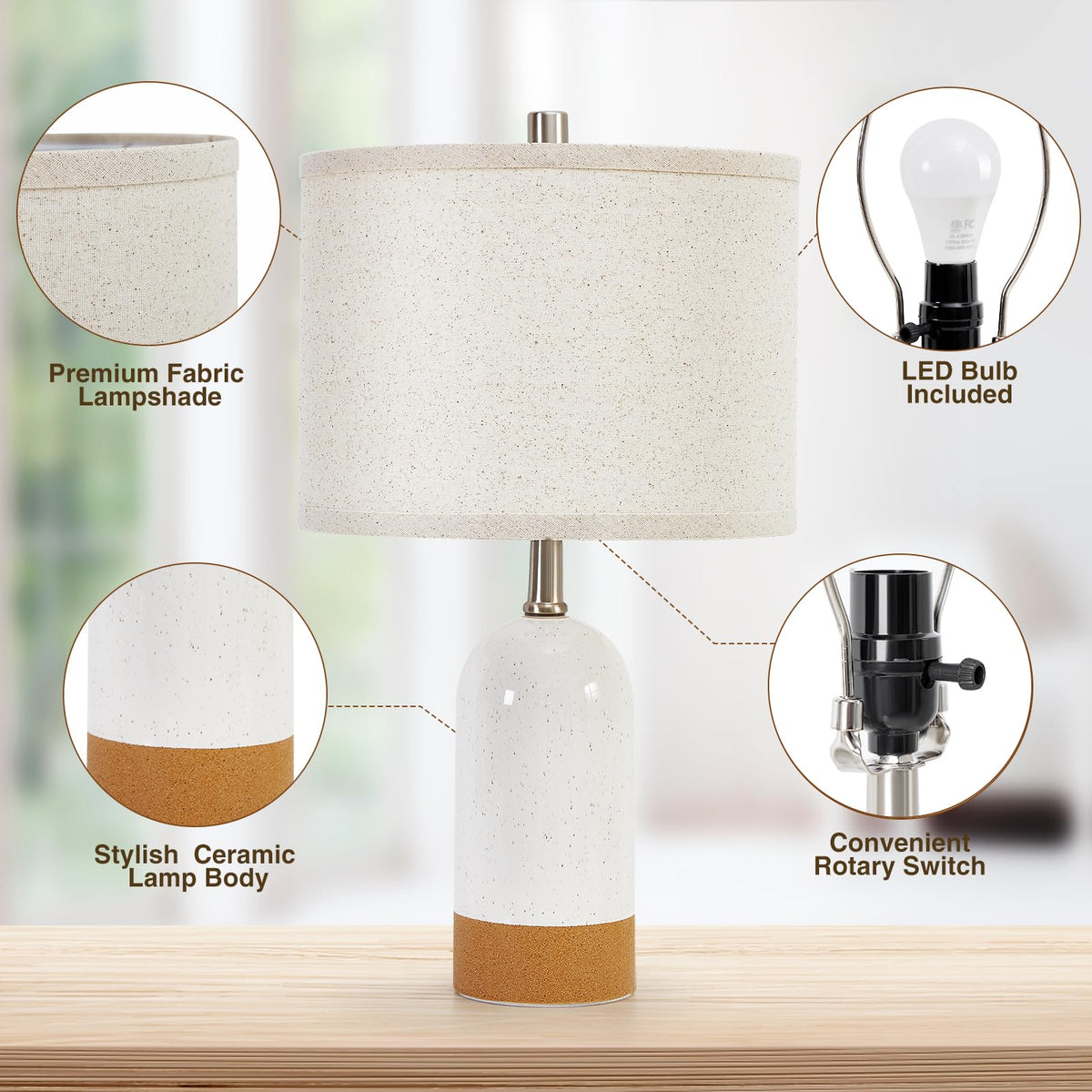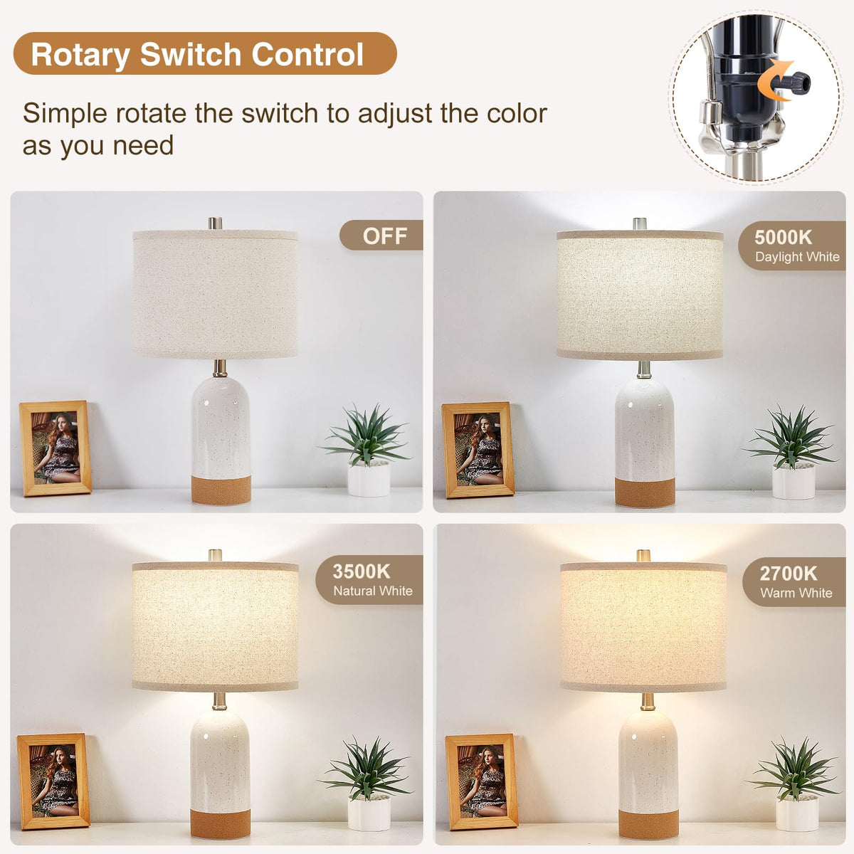 Gyrovu 3 Color Temperature Small Table Lamp For Bedroom, Bedside Desk Reading Lamps, 21.5'' Nightstand Ceramic Lamp For Kids Roo