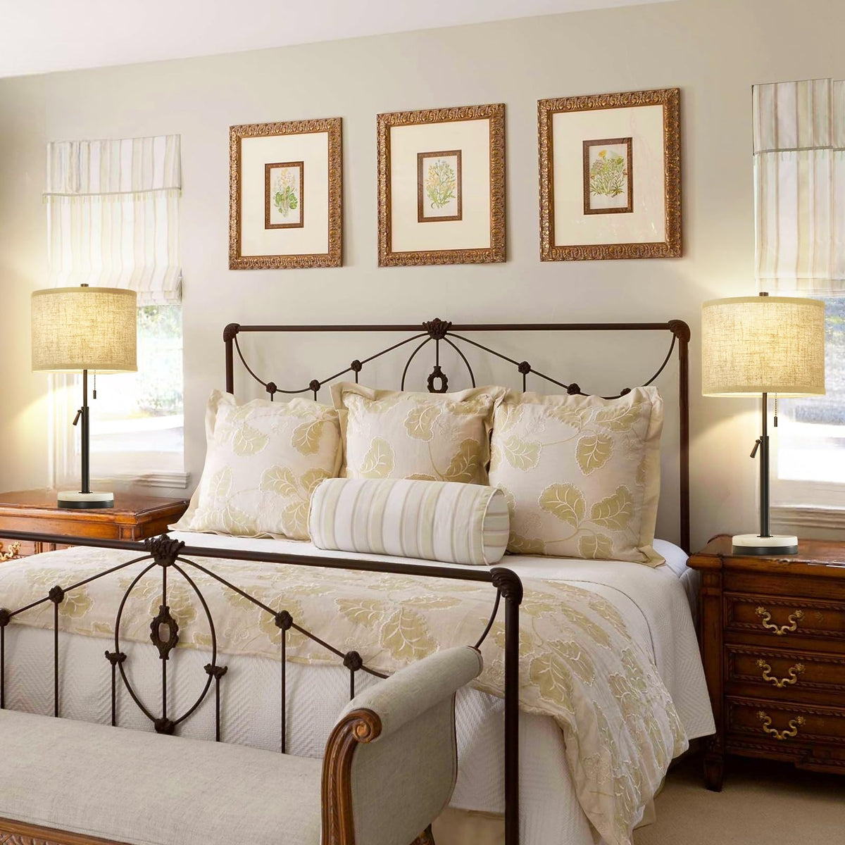 - **Modern Design & Eye Care**: This set of 2 table lamps features a fabric round lampshade and a marble base that provides a cozy ambiance. The design integrates seamlessly with any decor style. The fabric lampshade softens the light, creating a bright yet gentle luminance that is easy on the eyes.