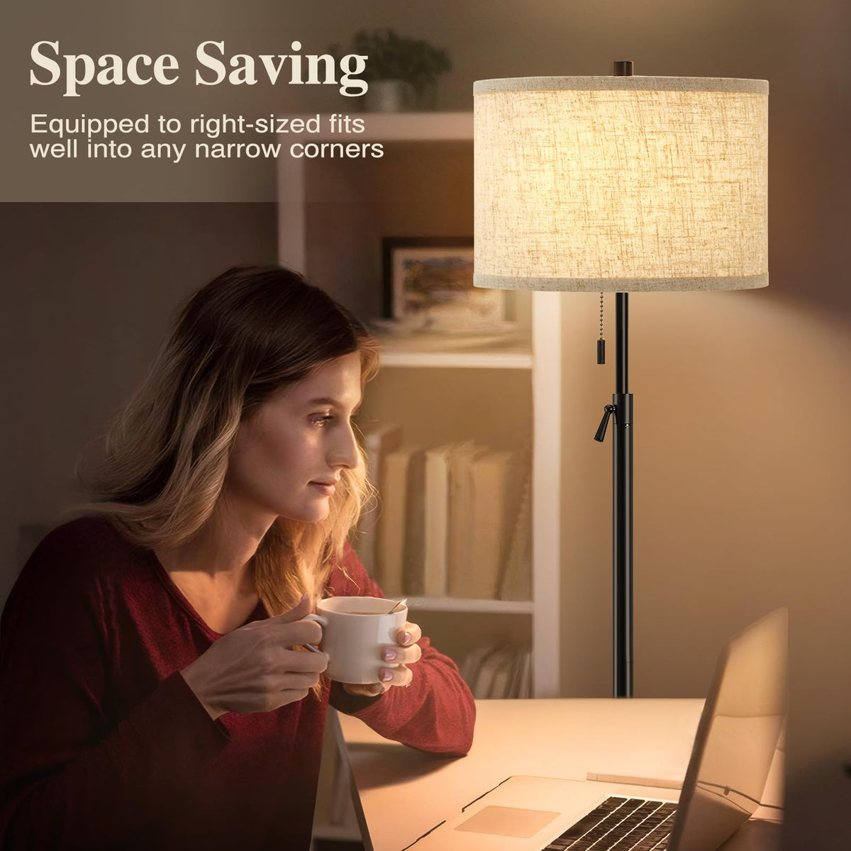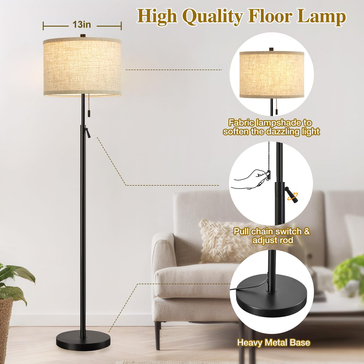 ?Super Flexible Adjustment Height?The Advanced Standing Floor Lamp Features The Most Flexible Adjustable Height Poles. Equipped Wo Right-Sized Base, Fits Well Into Any Narrow Corners. Floor Lamp Can Adjust Height Between 55-64'' To Accommodate Optimal Lighting In Any Circumstances, As Well As Meet The People Of Different Heights Light Needs,Like Kids, Adults, And The Elderly. | ?Best Design Modern Floor Lamp?This Sleek Metal Standing Lamp Features A Black Pole And Base, Giving It A Sophisticated, High-End Appearance. The Beige Linen Lampshade Adds An Elegant Touch, Enhancing The Lamp