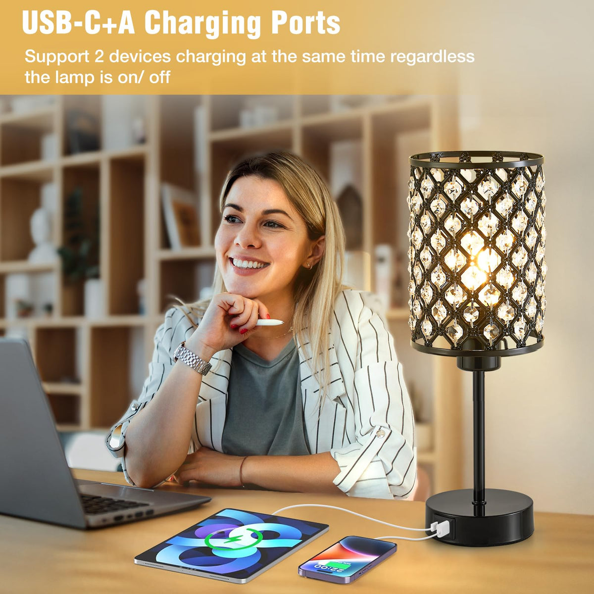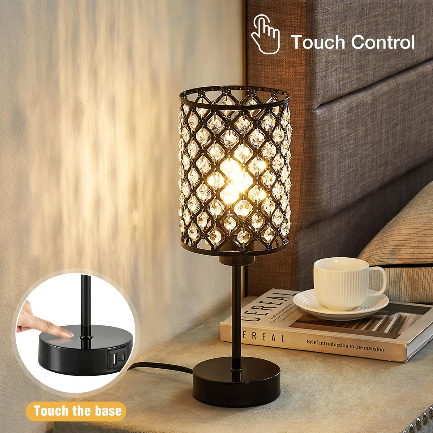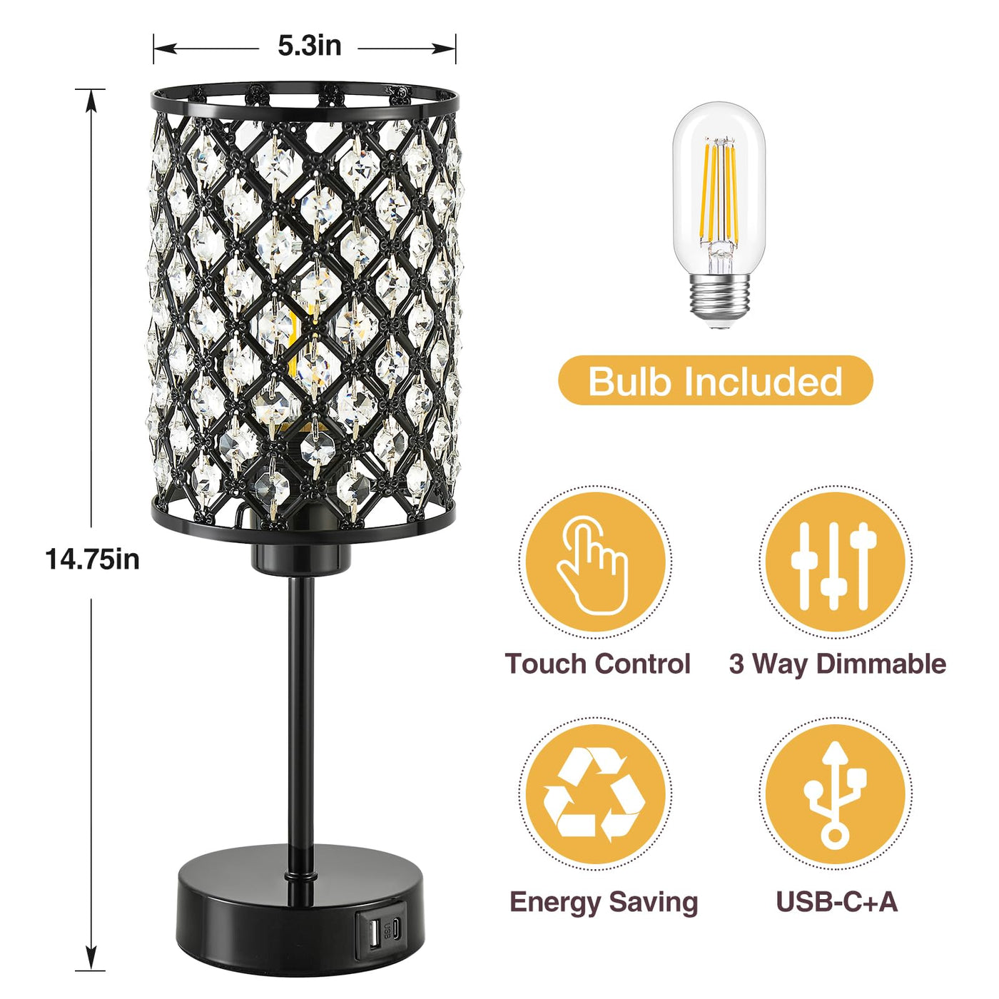 This Black Crystal Table Lamp Is An Elegant Home Decoration And An Ideal Gift. Its Modern And Exquisite Design, And The Black Base And Sparkling K9 Crystal Make It Look Very Stylish. It Is Suitable For Decoration In Various Environments Such As Bedrooms, Living Rooms, Restaurants, And Offices, And A Great Choice For Festivals, Birthdays, Housewarming, And Other Occasions. In Addition, It Also Has A Usb Port, Which Provides Convenience For Charging Multiple Devices. Touch Dimming And The Included Led Bulb Make It More Practical And Comfortable. Finally, The Installation Is Straightforward And Only Takes Two Minutes To Complete.