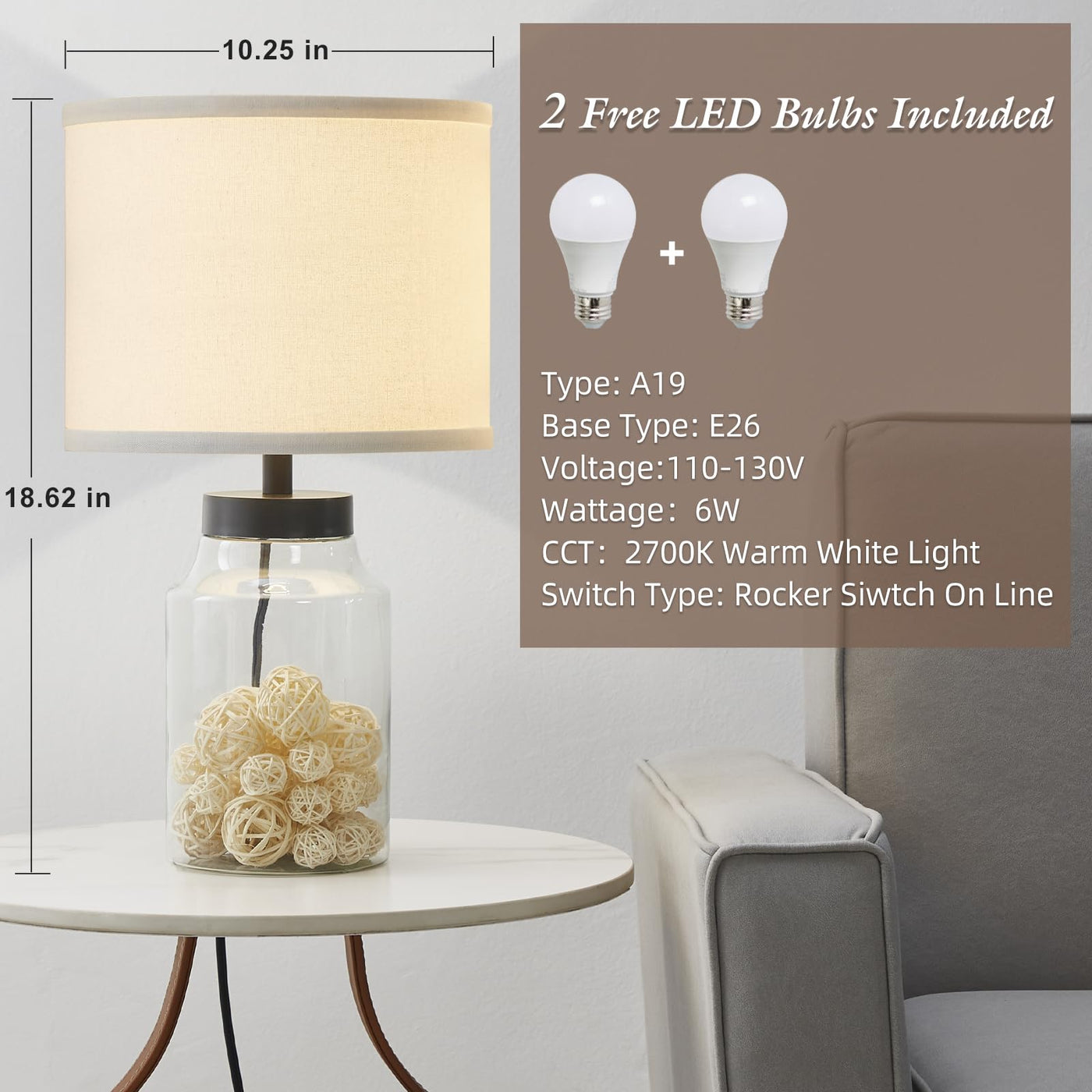 Q: What type of bulbs are included with the lamp?A: This table lamp comes with two A19 LED bulbs included in the package. These bulbs are energy-efficient, providing a warm white light while saving up to 90% on electricity bills compared to incandescent bulbs.