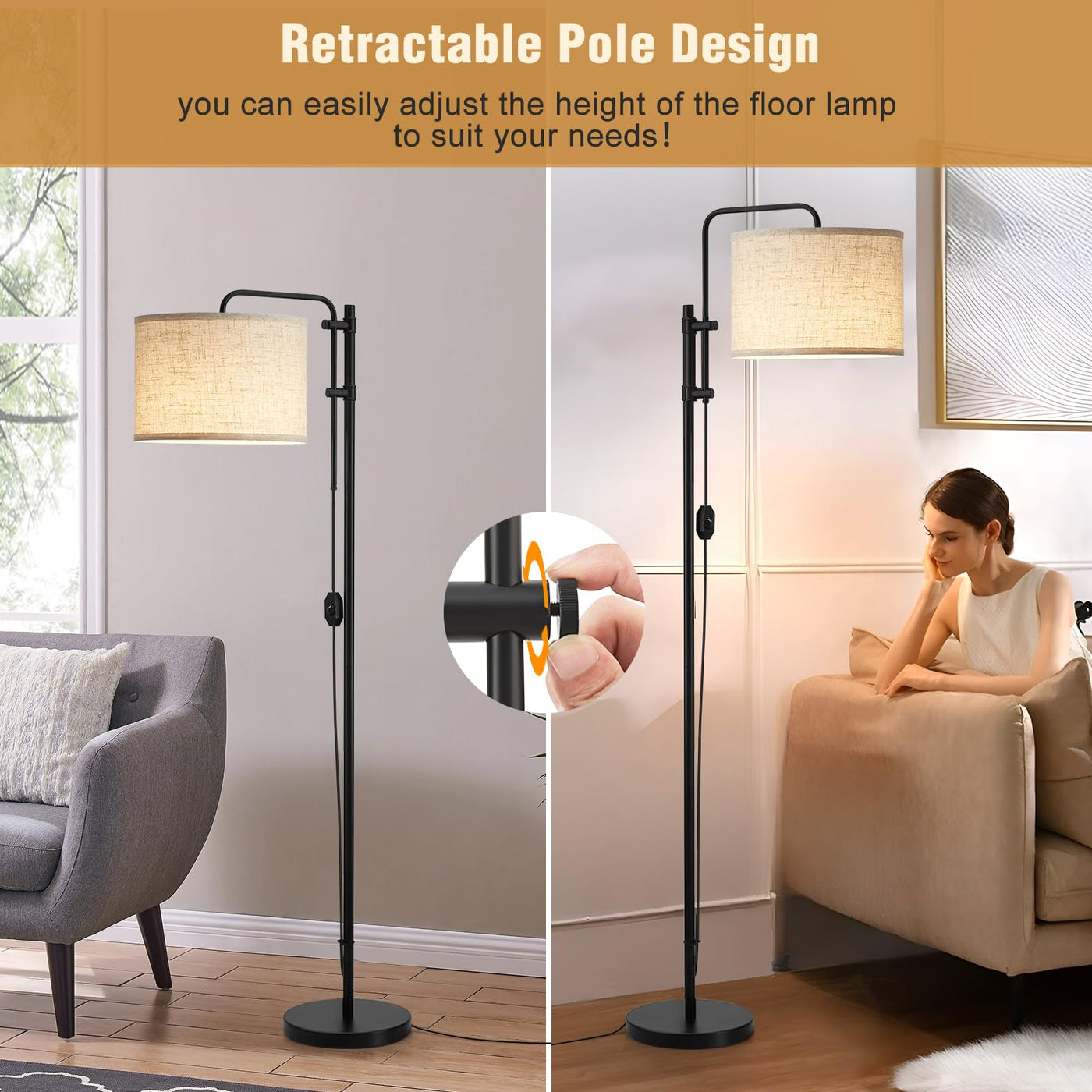 Gyrovu Floor Lamp For Living Room, Adjustable Height Standing Lamps With 350 Rotate Beige Lampshade, 67.5-Inch Modern Tall Lamp