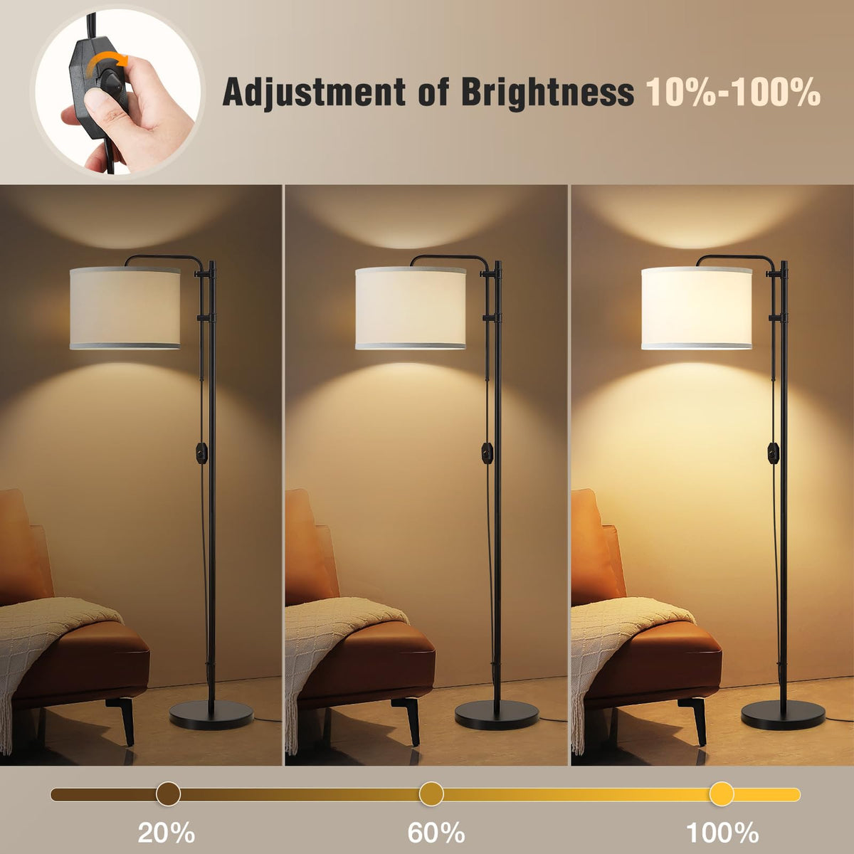 Q: Is the floor lamp dimmable?A: Absolutely! The GyroVu Floor Lamp comes with a dimmable switch that lets you adjust the brightness, making it ideal for different activities and moods, whether you need bright light for reading or a softer glow for relaxation.