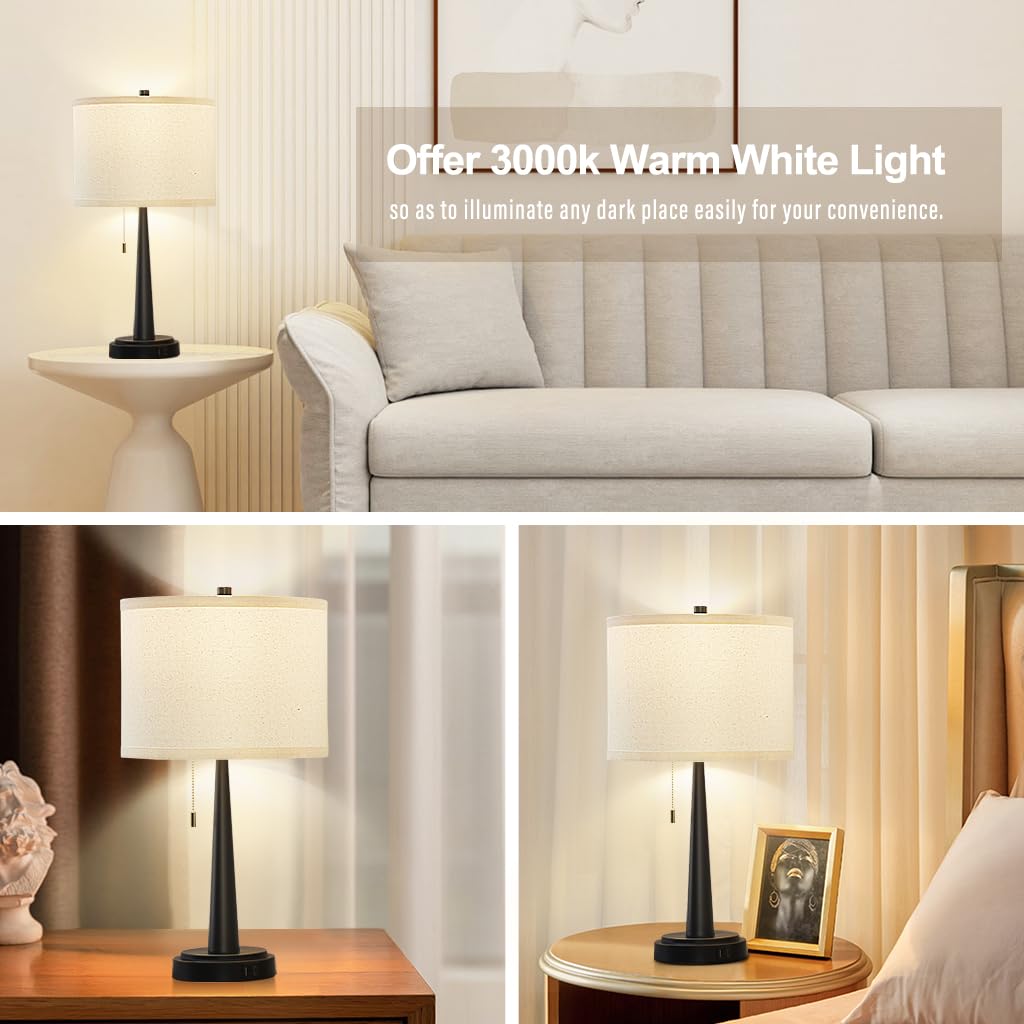 - **Stylish Minimalist Design**: Crafted with high-quality metal and a clever cone shape, these lamps are sturdy with no tipping, enhancing your decor with a vintage minimalist touch. The modern black metal body paired with a beige lampshade complements any interior style.