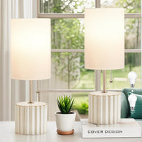 Gyrovu White Ceramic Table Lamps Set Of 2, Bedside Nightstand Lamps With 3-Color Temperature Ceramic Lamp Pull Chain, Small Desk