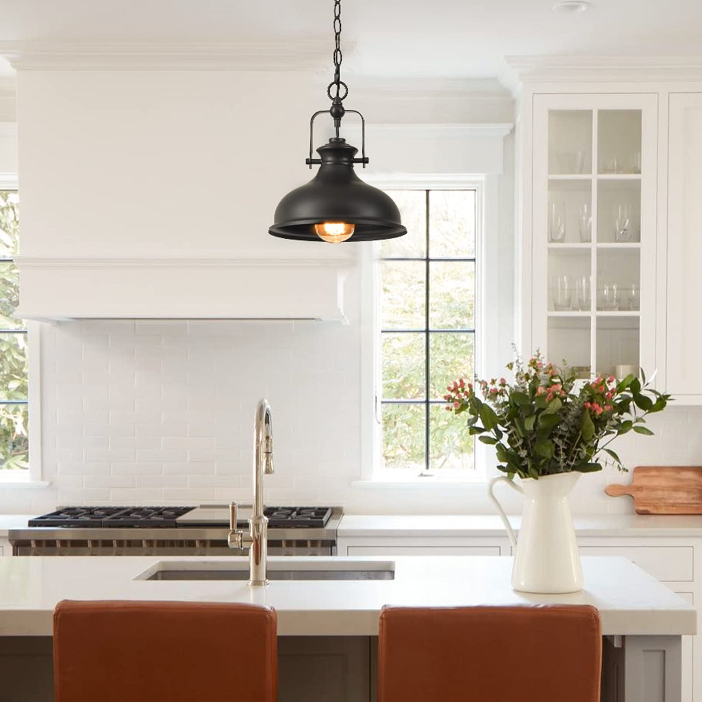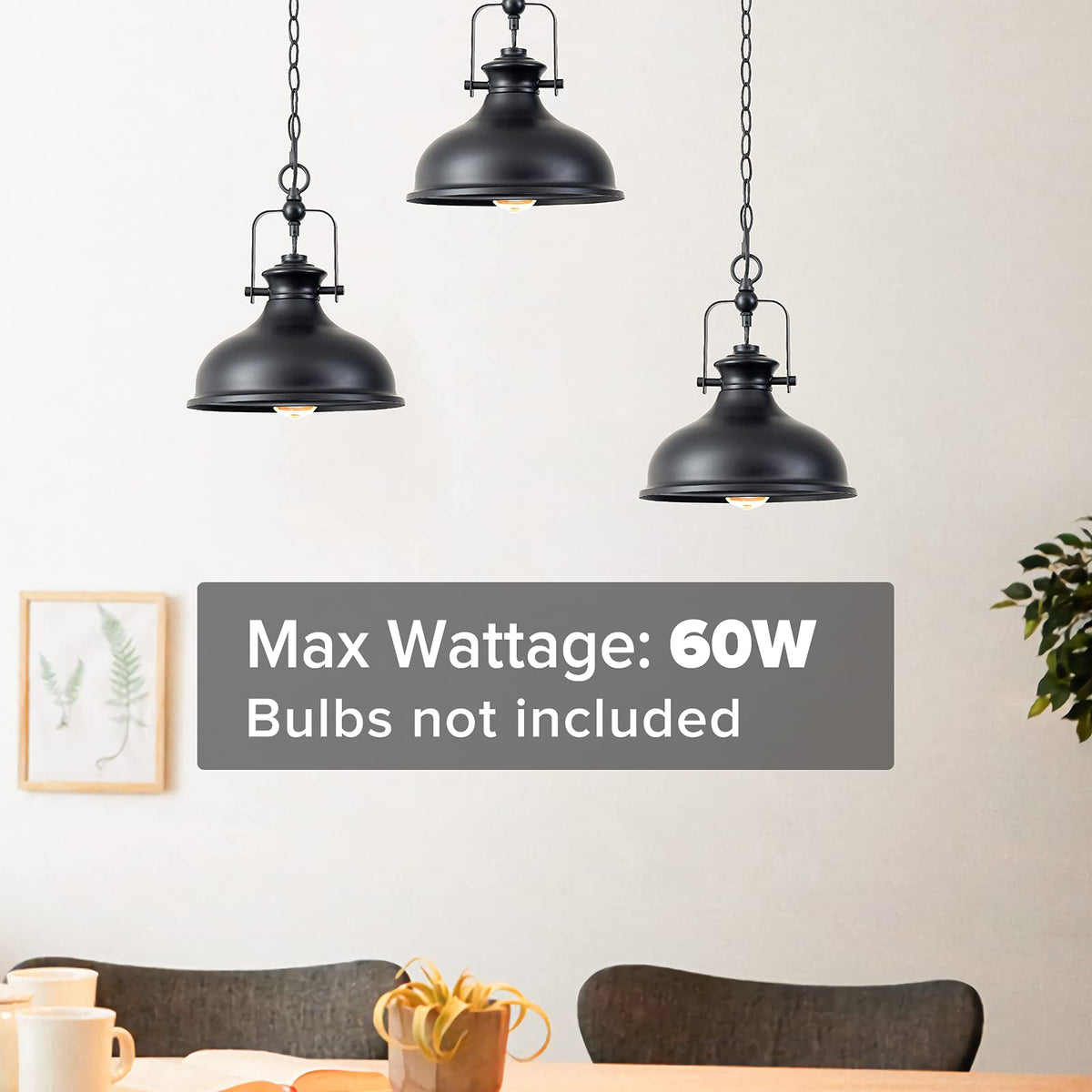 Industrial Single Light Kitchen Island Chandelier Gorgeous And Practical Pendant Lighting Fixture Features: ?Vul And Ce Listed, Safe To Use In Residential And Commercial Settings. ?Velegant Black Finish And Classic Dome Shade Design Bring High-End Aesthetic Beauty To Your Home. ?Vheight Adjustable From 14.5Inches To 50.5Inches, Adapt To Different Space With Different Ceilings. ?Vcrafted Of High-Quality Metal, Easy To Maintain, Keeping Enduring Beauty For Years To Come. ?Vtypical Farm House Style Look, Suitable To Use In Dining Room, Kitchen, Living Room, Above Pool Table Or Porch. Notes: 1. The Light Is For Indoor Use Only. 2. Bulbs Are Not Provided In The Package. 3. If You Want To Adjust Brightness, Install A Dimmer And Use Dimmable Bulbs. If Any Concerns, Feel Free To Contact Gzbtech. Package Includes: ? 1*Pendant Light ? 2*Screws ? 3*Wire Connectors ? 1*User Manual Specifications Dimension: 10.63 L 10.63 W 50.5 H Material: Metal Color: Polished Black Voltage: 120V Max. Wattage: 60W Bulb Base: E26 Bulb Type: Led/Cfl/Incandescent/Edison(Not Provided) Max. Total Height: 50.5 Min. Total Height: 14.5 Certification: Ul&Ce