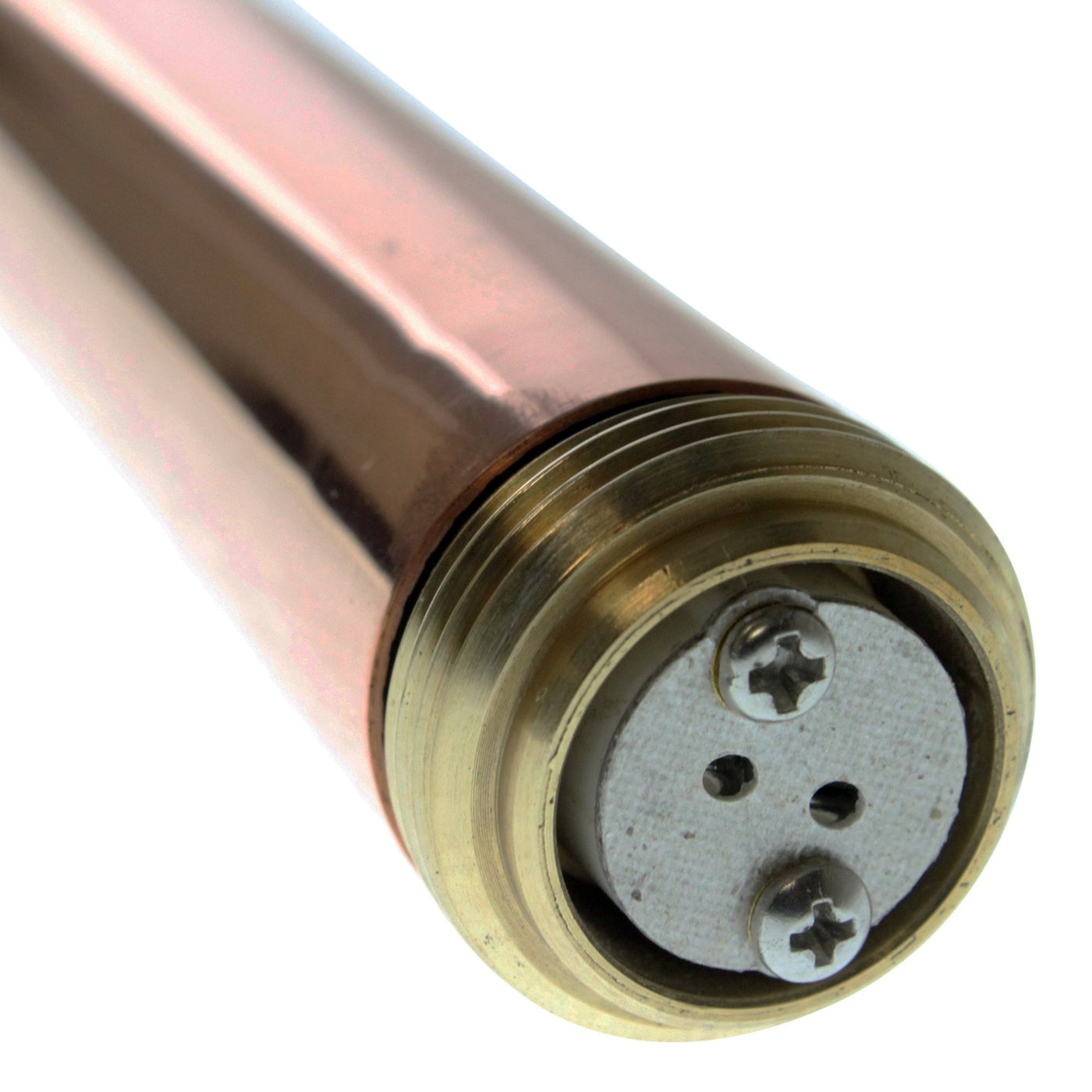 Q: What materials are used in the construction of this landscape light?A: This landscape light features solid spun copper and brass construction, ensuring durability and a stylish appearance.