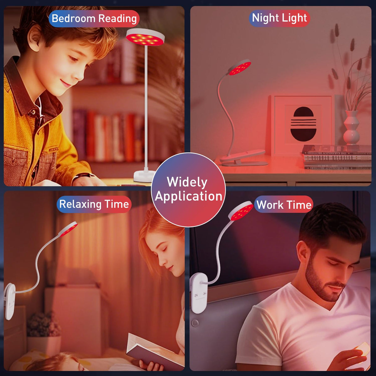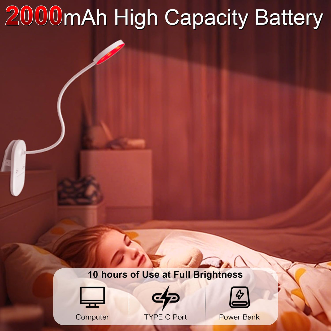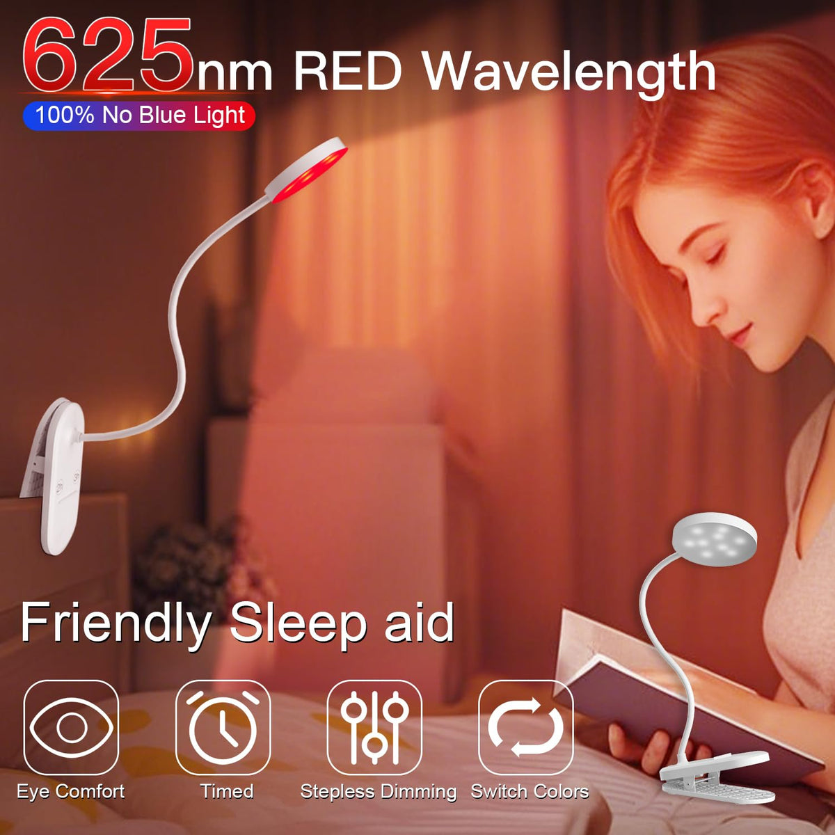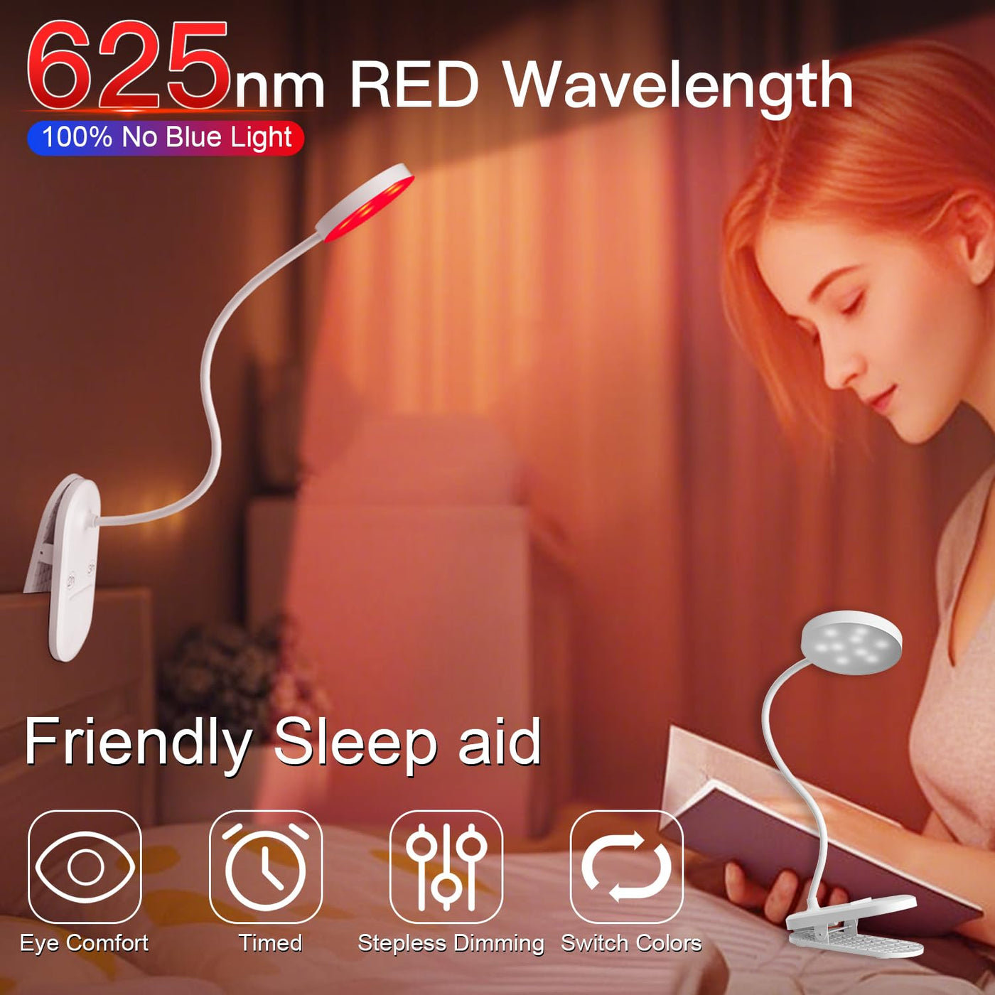 Haigvel 2 Color Red Book Light, 630Nm Clip-On Red Night Light For Sleep & Reading, Rechargeable Desk Lamp With Adjustable Bright