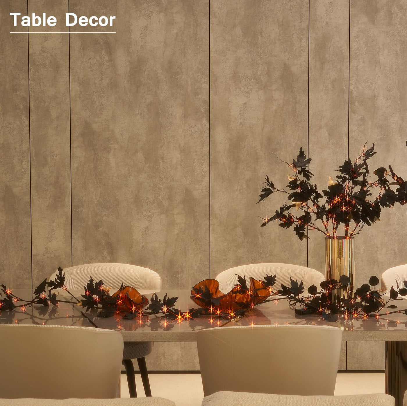 Hairui Lighted Black Maple Garland With Timer 48 Led Orange And Warm White Fairy Lights, Halloween Garland With Lights 6Ft Battery Operated With 10 Functions For Fireplace Table Halloween Decoration