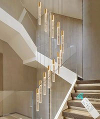Haixiang 118'' High Ceiling Chandelier Linear Crystal Pendants, Remote Dimmable, Compatible Sloped Ceilings, 12-Light Gold, 60 W