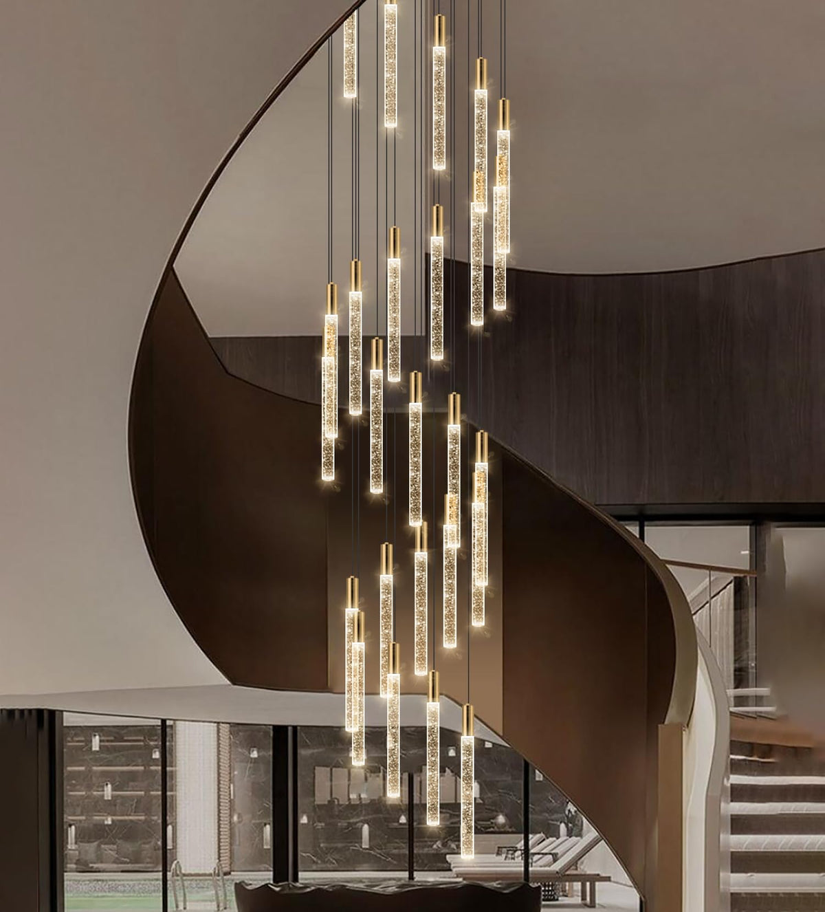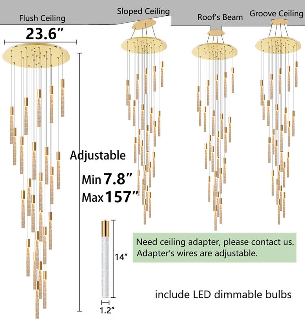 Haixiang 13Ft High Ceiling Chandelier For Entryway Modern Crystal Led Light Glam Chandeliers For Living Room Foyer Sloping Ceili