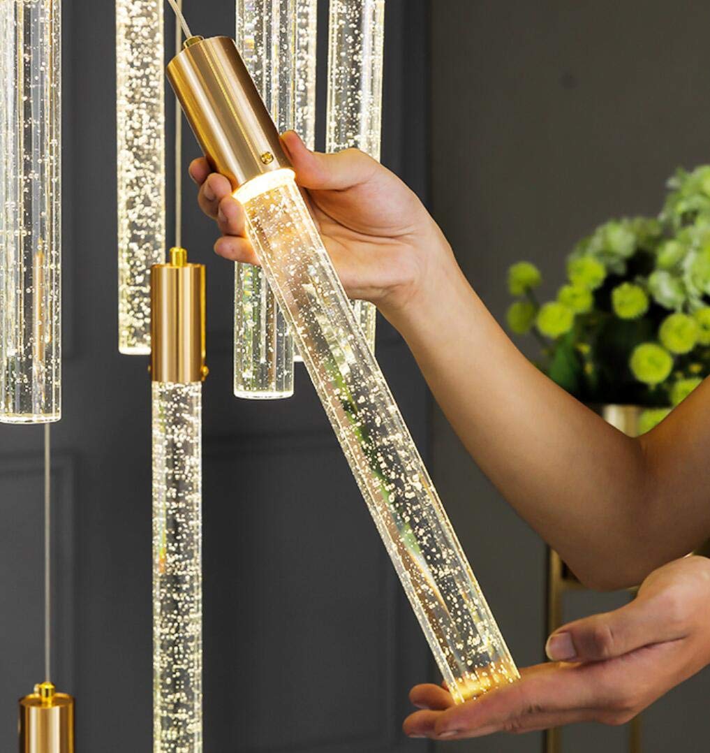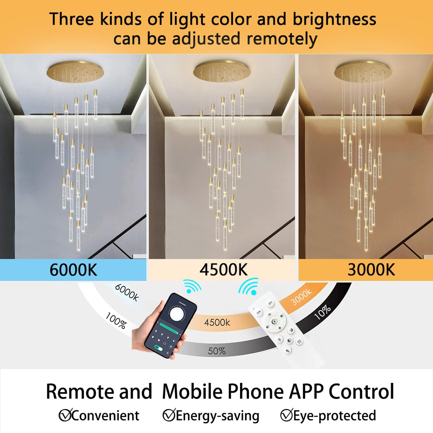 HAIXIANG 13FT High Ceiling Chandelier for Entryway Modern Crystal LED Light Glam Chandeliers for Living Room Foyer Sloping Ceiling Pendant Lighting Fixture 24-Lights Gold