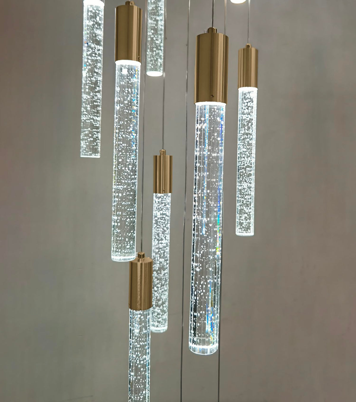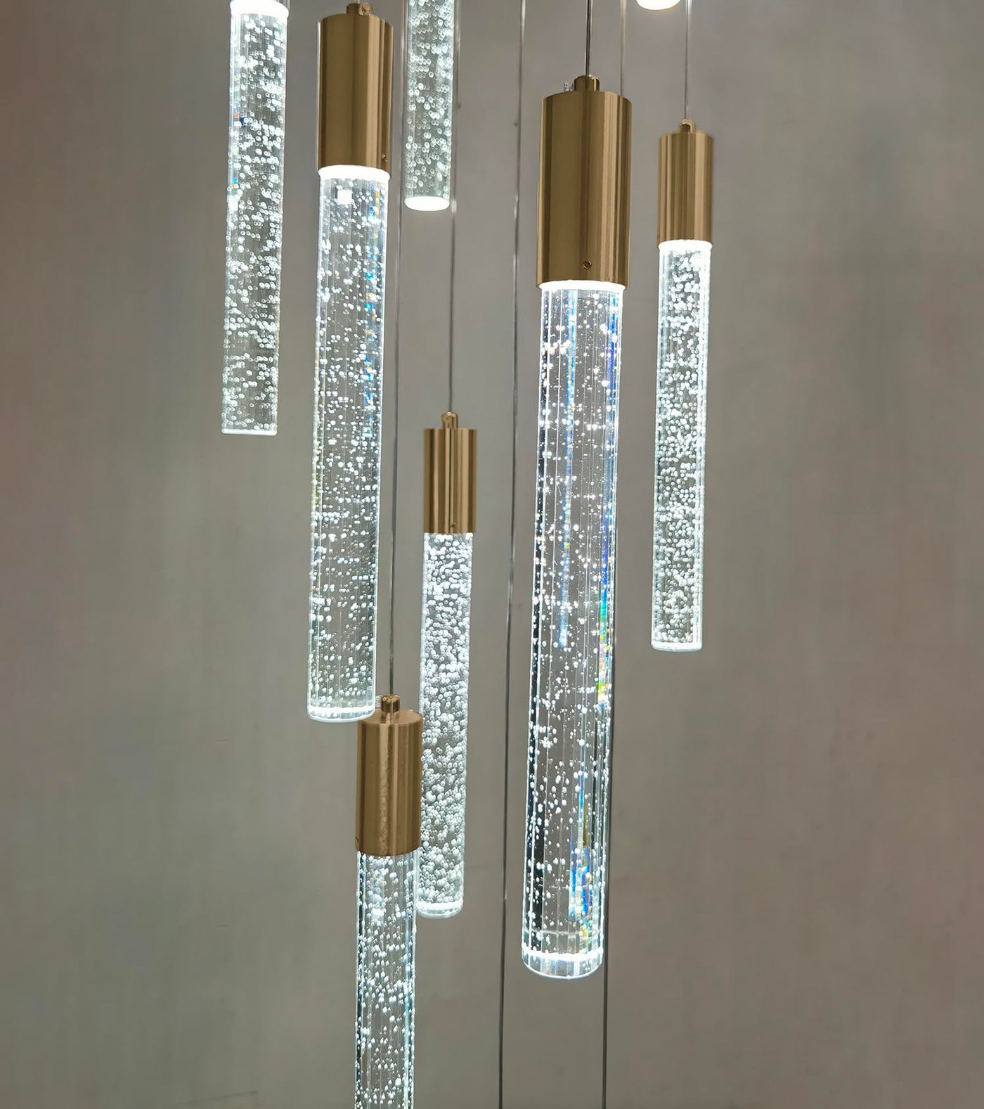 Haixiang 14.7 Foot High Ceiling Chandelier For Entryway Modern Crystal Lights For Living Room Foyer Flush Mount Sloping Ceiling