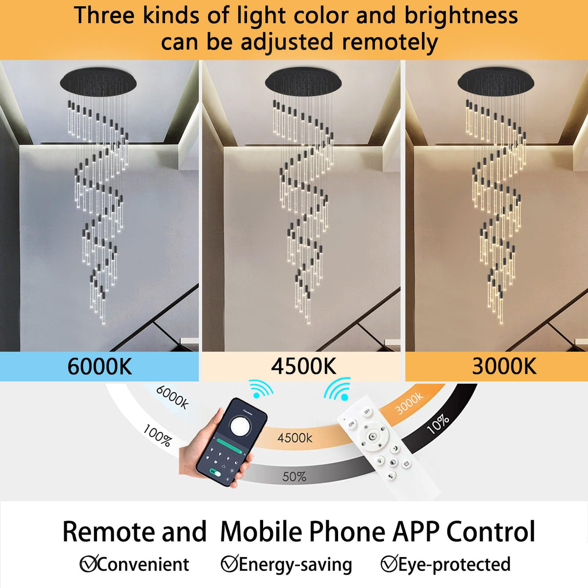16 Foot Chandeliers for Living Room Entryway High Ceiling Light Fixtures Sloped Flush Mount Ceiling Pendant Lighting Dimmable Chandelier with Remote LED Crystal Pendants Lighting Black Light