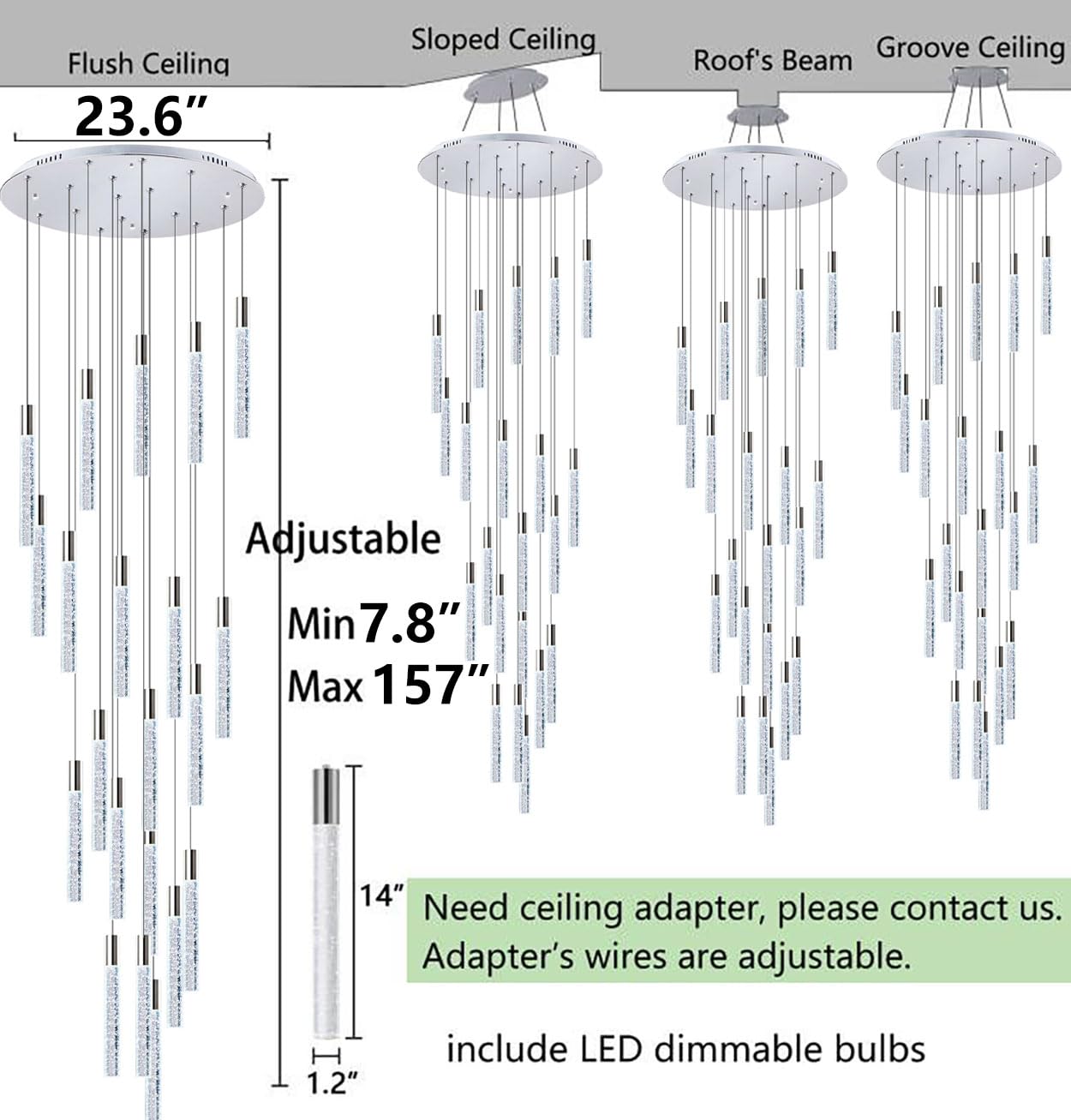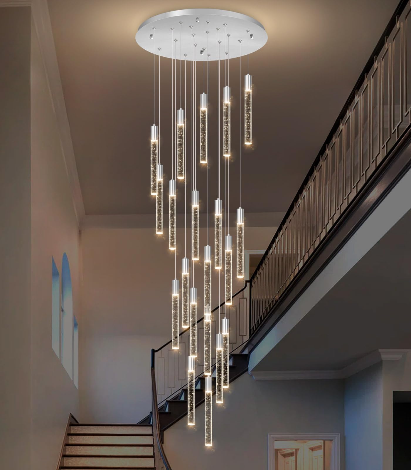 Haixiang W24 X H157 Glam Chandelier Bubble Crystal Ceiling Chandeliers Remote Dimmable Led Light High Ceiling Pendants Light Fix