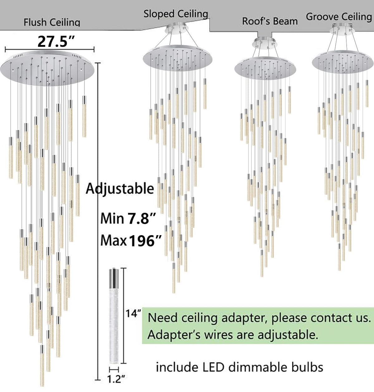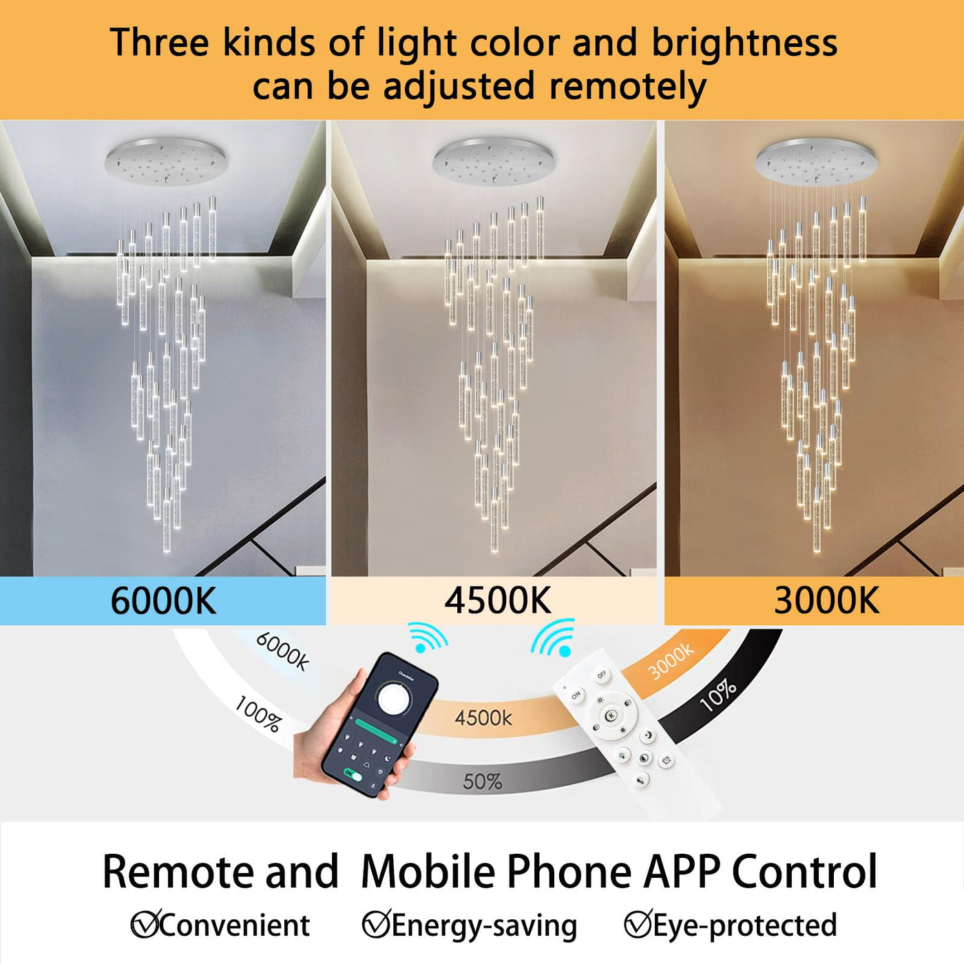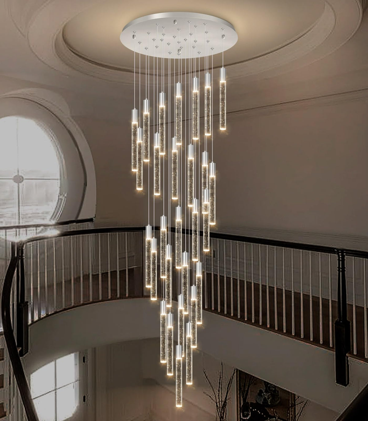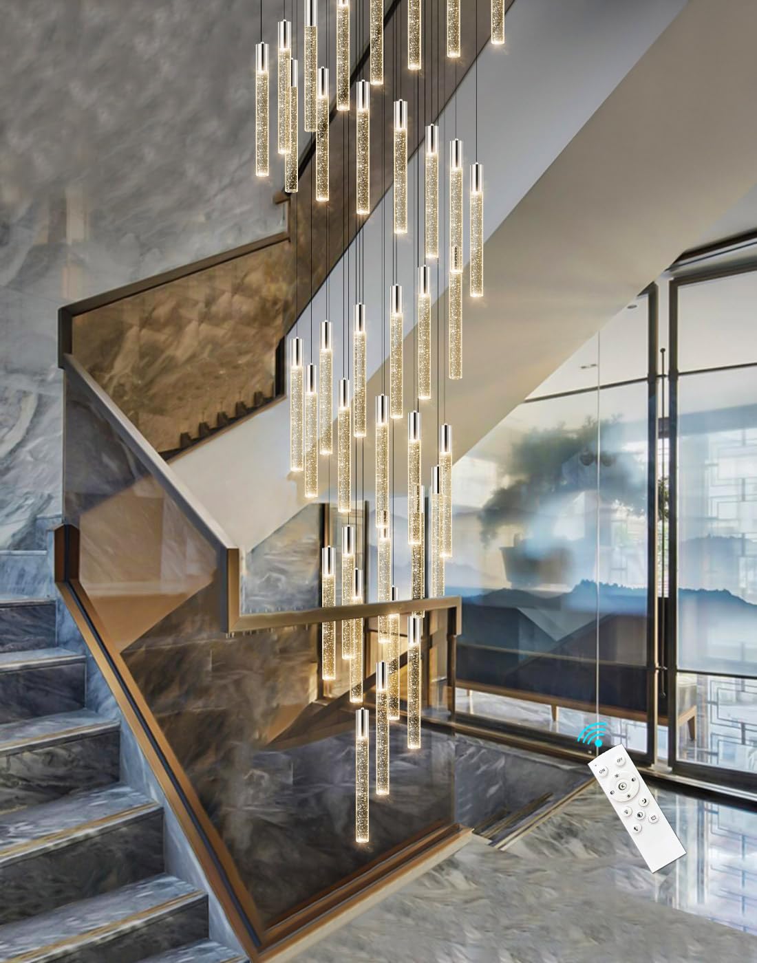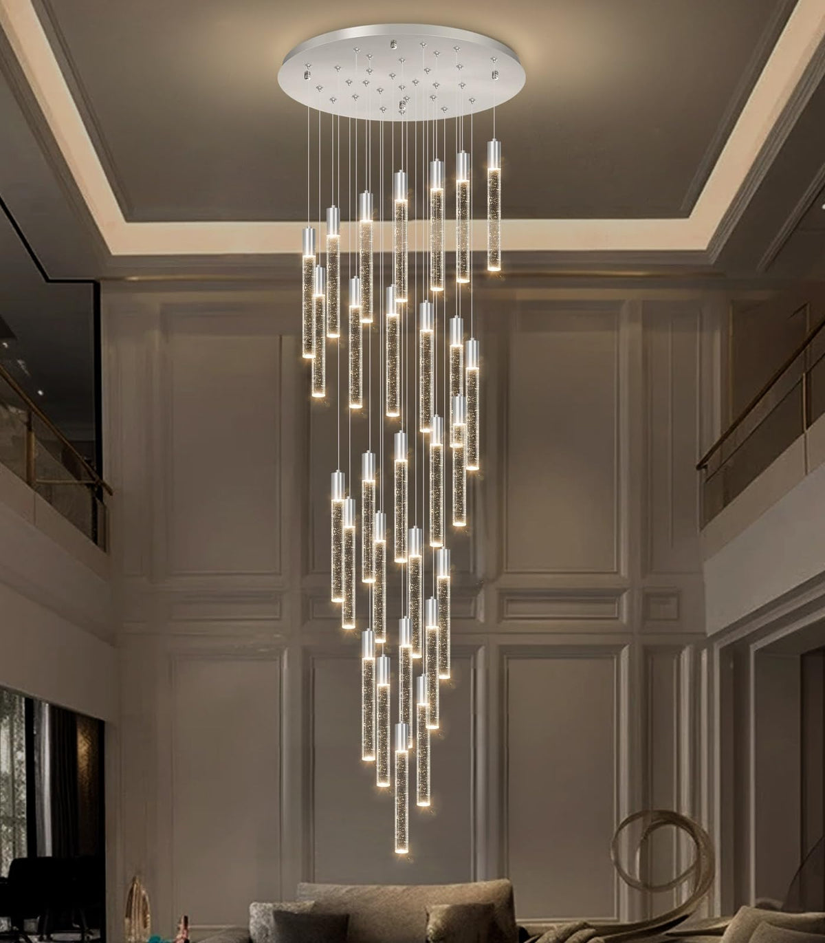 Haixiang W27.5 X H196 Large Glam Chandelier Bubble Crystal Ceiling Chandeliers Remote Dimmable Led Light High Ceiling Pendants L