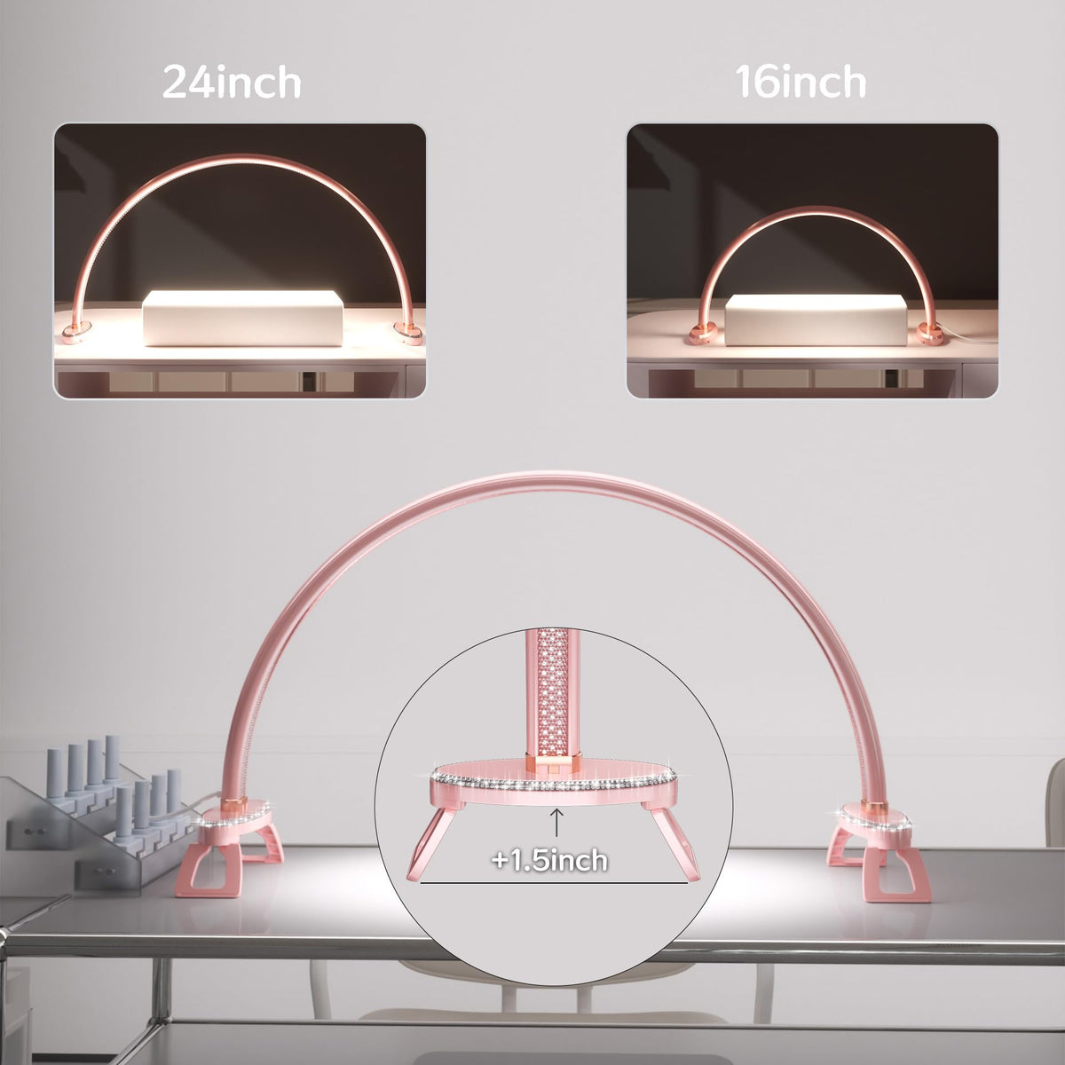 Q: What makes the Half Moon Light a great gift option?A: The Half Moon Light's elegant design, adorned with sparkling crystal diamonds on the bases, makes it a stylish and thoughtful gift for girls and ladies. Its practicality for beauty and nail care combined with its aesthetic appeal enhances any nail salon or workspace.