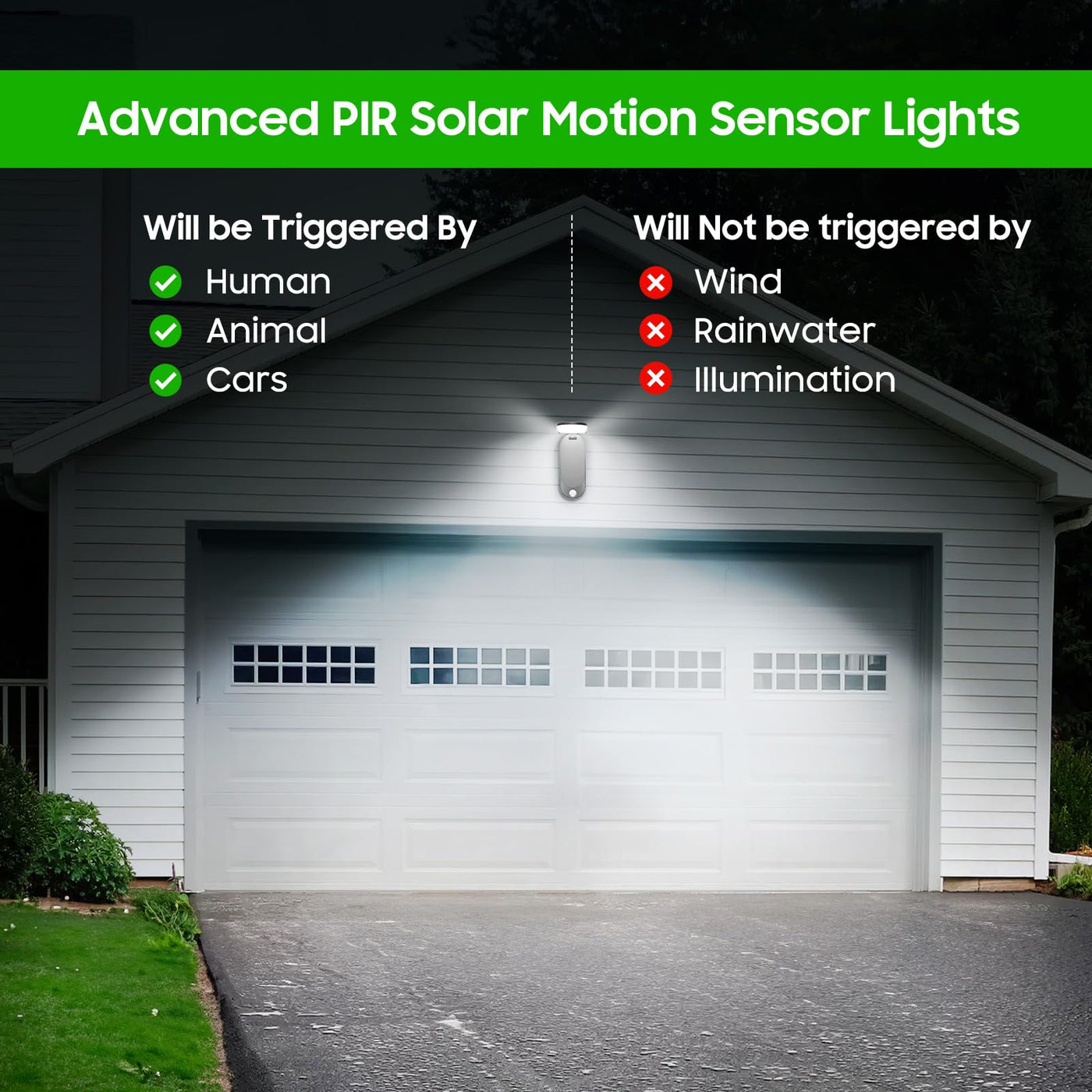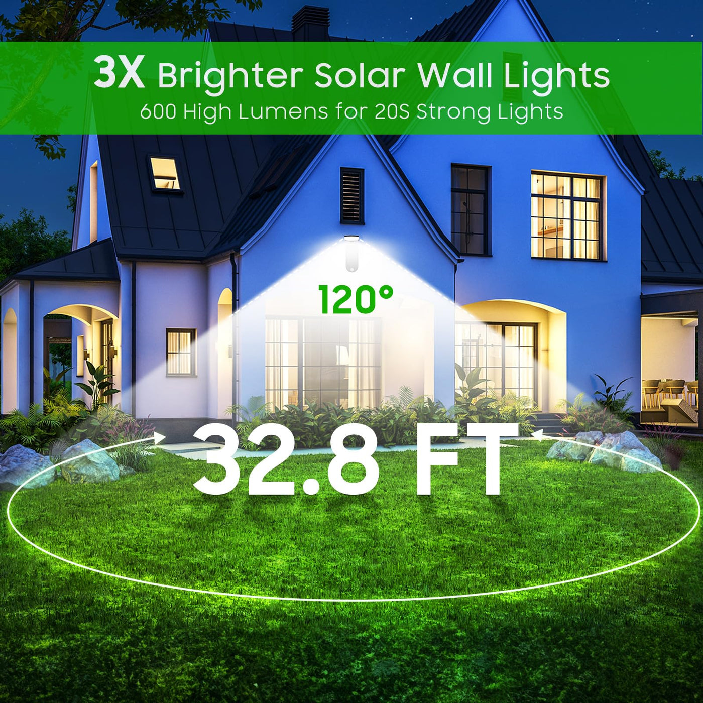 Illuminate Your Outdoor Spaces with HALHSAP Solar Motion Sensor Lights Choose our solar motion lights outdoor for a combination of style and functionality that adds charm to your outdoor space. Brighten up your surroundings and enjoy the convenience of smart motion sensing! Our solar motion lights are not just ordinary exterior lights, they're equipped with a smart motion sensor featuring two modes to cater to your unique needs. Mode1: Motion Sensor Mode, which activates the outdoor wall lights when it senses movement within a 32.8ft range and a 120-degree angle. Then automatically switches off after 20 seconds of no activity. Mode2: Constant Light Mode, keep your space well-lit throughout the night, ensuring both convenience and safety in your outdoor life. Versatile Illumination: With a flexible 0-90° foldable design, these outdoor solar lights offer a dynamic lighting experience. Adjust the angle to achieve different lighting effects, providing you with tailored solutions for all your outdoor lighting and decorative needs. Weatherproof and Reliable: Made to withstand the elements, these outdoor solar lighting are built tough with IP65-rated weather resistance. The solar outdoor lights can withstand heavy rain, snow, extreme temperatures, and more, ensuring they'll reliably shine through any season. Effortless Setup: No professional installation needed! These solar lights outdoor motion sensor are easy to install, thanks to the included screws. Simply secure the motion sensor outdoor lights on any surface that gets direct sunlight, and you're ready to enjoy brilliant outdoor lighting.