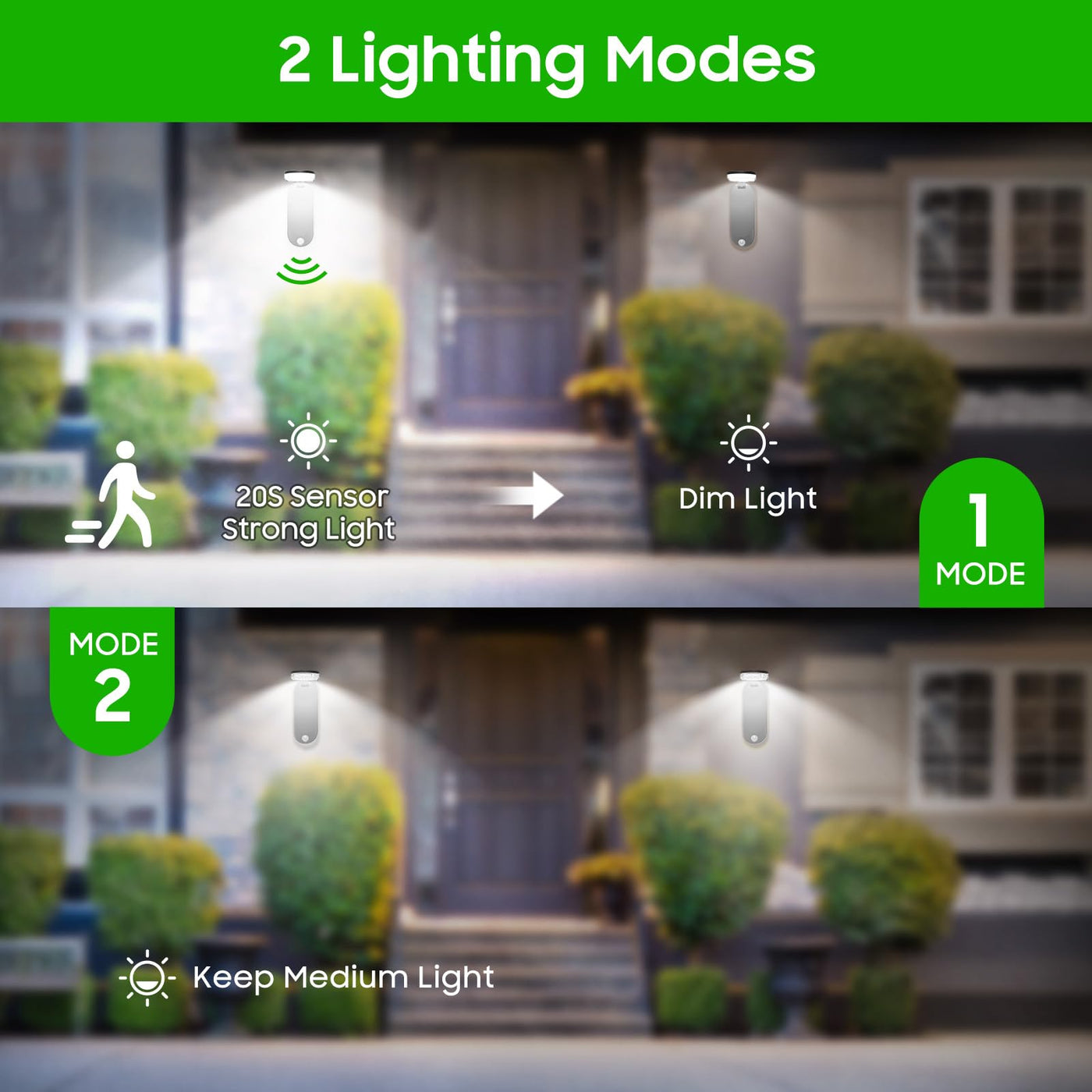 Q: How does the motion sensor work on these outdoor lights?A: The motion sensor detects movement within a 32.8ft range and a 120-degree angle. In Motion Sensor Mode, the lights automatically activate when motion is sensed and turn off after 20 seconds of no activity, providing convenience and safety.