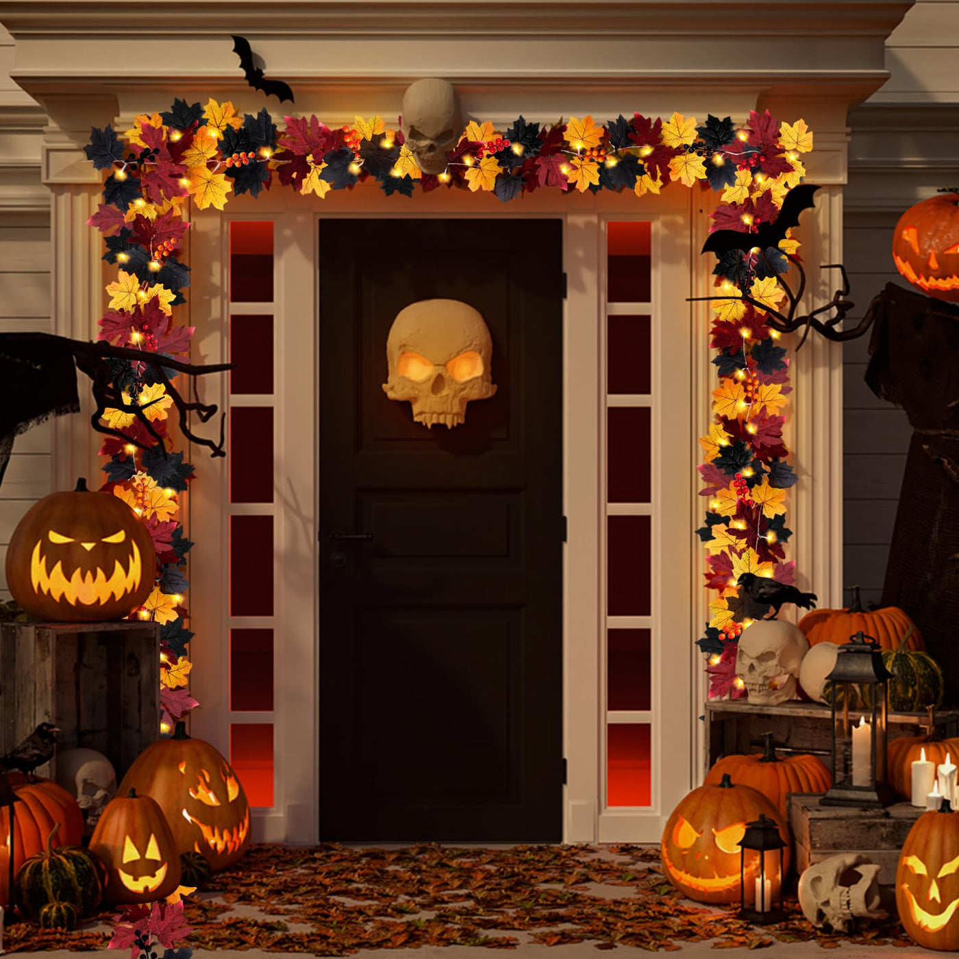 Q: Is the Halloween garland waterproof?A: Yes, the garland has an IP65 waterproof rating, making it suitable for both indoor and outdoor decorations, even in rainy or snowy conditions.