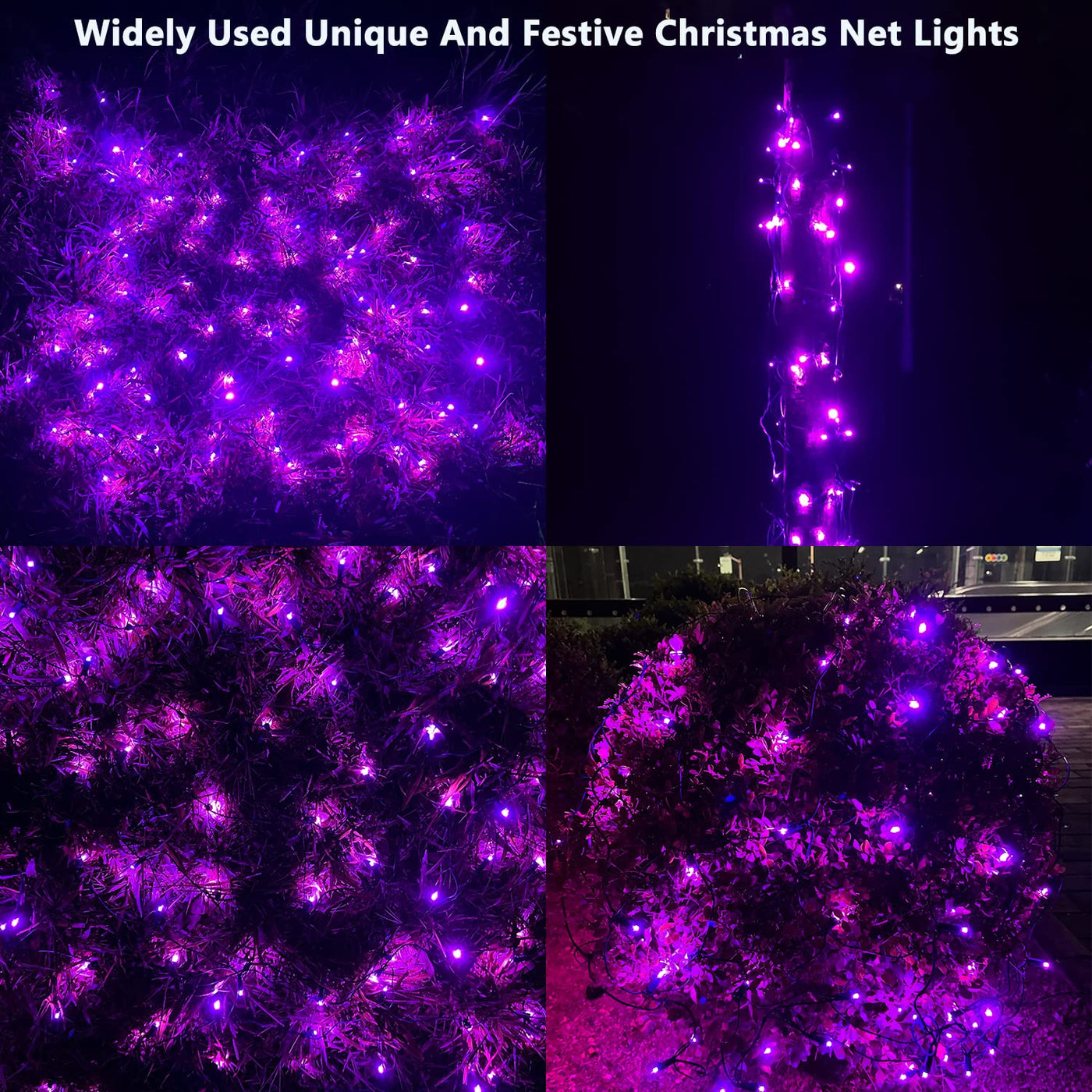 Halloween Lights Outdoor,100Led 5Ftx5Ft Purple Halloween Net Lights With Connectable, Waterproof ,Ul Certified And Durable Green Wire Design For Bushes,Trees,Halloween Decorations Outdoor(Purple)