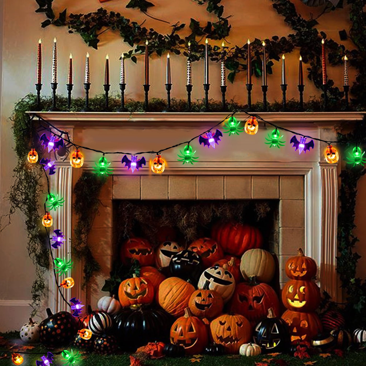 Q: What decorations can I use these Halloween lights for?A: These string lights can be used for a wide range of decorations, including your fireplace, mantle, table, windows, courtyard, patio, lawn, porch, fence, or any corner of your room, making them versatile for Halloween parties and festive decor.