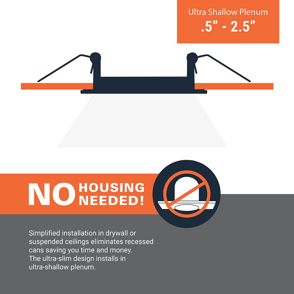 Easy Installation: No housing or existing J-box is required for installation. The easy-to-use spring clips firmly secure the recessed LED lights in the ceiling. It fits standard round hole saw sizes, and a cutout template is included for your convenience.