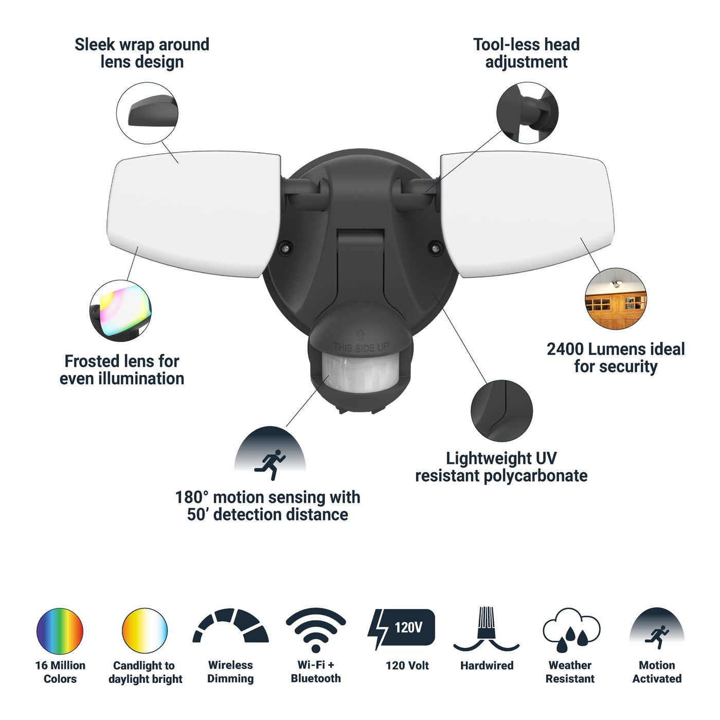 When Was The Last Time You Had Fun With Your Lighting? The Halo Esf Wiz Motion Smart Floodlights Do More Than Boost Security And Functionality. They Give You Full Control With Customizable Colors And Features That Brighten Your Space Your Way! Use The App To Tune The Color Temperature Or Choose From 16 Million+ Colors To Set The Mood While Entertaining, During The Holidays, Or Whenever You Want To Change The Vibe. These Security Floodlights Can Be Wall Or Eave-Mounted To Recessed Or Surface Junction Boxes For Hassle-Free Installation. The Lighting Connects To Your Homes Wifi Network, Allowing You Full Control From The App. Adjust The Settings From Your Fingertips, Add Voice Control, Or Incorporate Your Lighting With Your Smart Home Network For Seamless Automation. Designed And Tested In The Usa, Halo Has Been A Contractor-Preferred Brand For Over 65 Years And Is North America'S Top-Selling Recessed Lighting Brand. Products Are Backed By Us-Based Customer Service And A 5-Year Warranty.