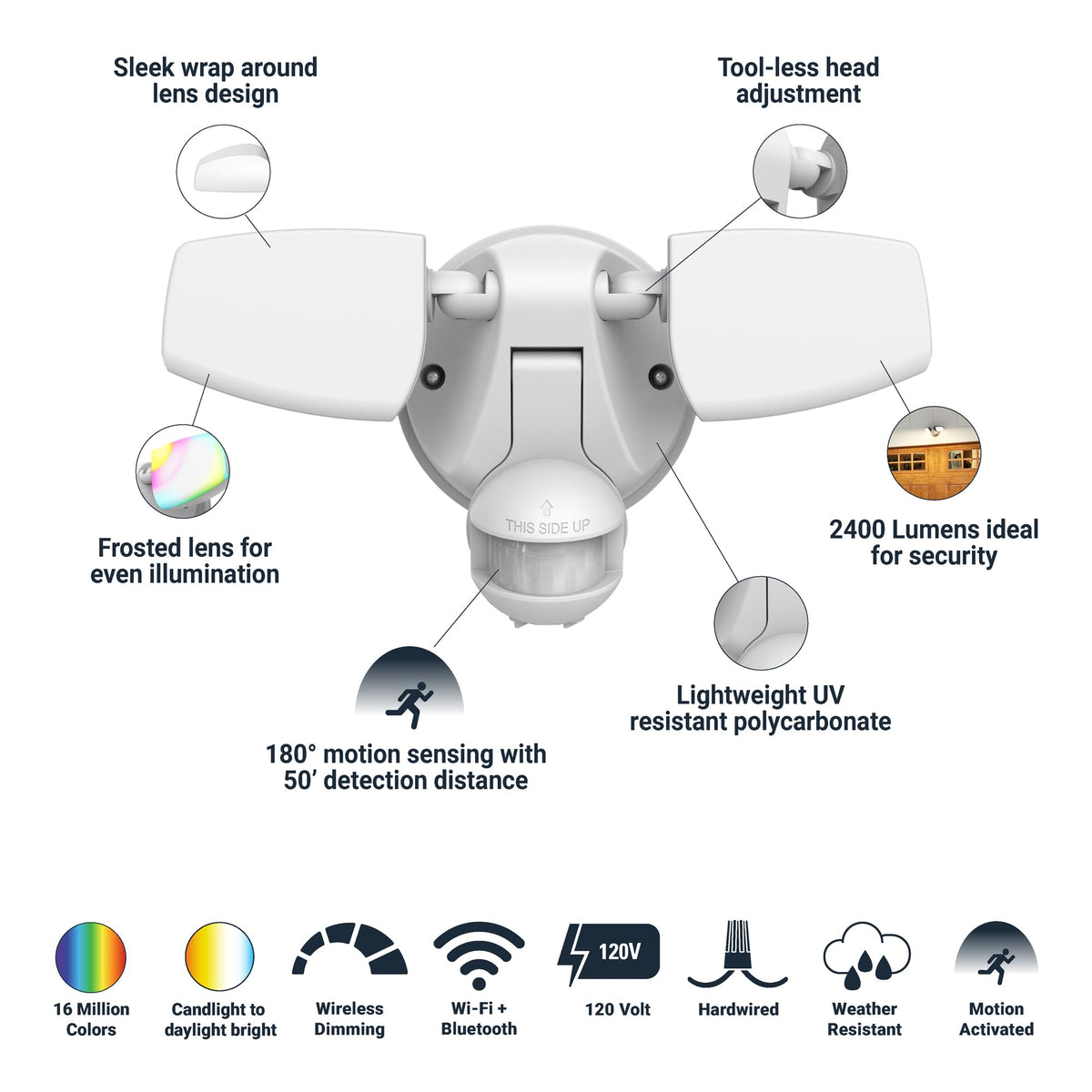 Halo Esf Wiz Motion Smart Wifi Color Changing Led Security Floodlight For Outdoors - White - Esf2Argbwmw-Wiz