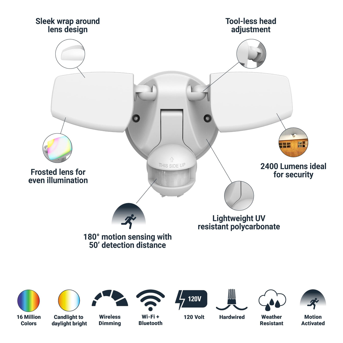 When Was The Last Time You Had Fun With Your Lighting? The Halo Esf Wiz Motion Smart Floodlights Do More Than Boost Security And Functionality. They Give You Full Control With Customizable Colors And Features That Brighten Your Space Your Way! Use The App To Tune The Color Temperature Or Choose From 16 Million+ Colors To Set The Mood While Entertaining, During The Holidays, Or Whenever You Want To Change The Vibe. These Security Floodlights Can Be Wall Or Eave-Mounted To Recessed Or Surface Junction Boxes For Hassle-Free Installation. The Lighting Connects To Your Homes Wifi Network, Allowing You Full Control From The App. Adjust The Settings From Your Fingertips, Add Voice Control, Or Incorporate Your Lighting With Your Smart Home Network For Seamless Automation. Designed And Tested In The Usa, Halo Has Been A Contractor-Preferred Brand For Over 65 Years And Is North America'S Top-Selling Recessed Lighting Brand. Products Are Backed By Us-Based Customer Service And A 5-Year Warranty