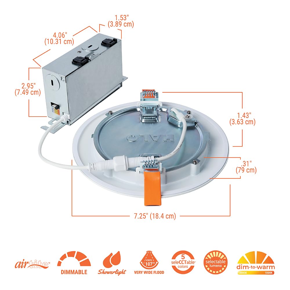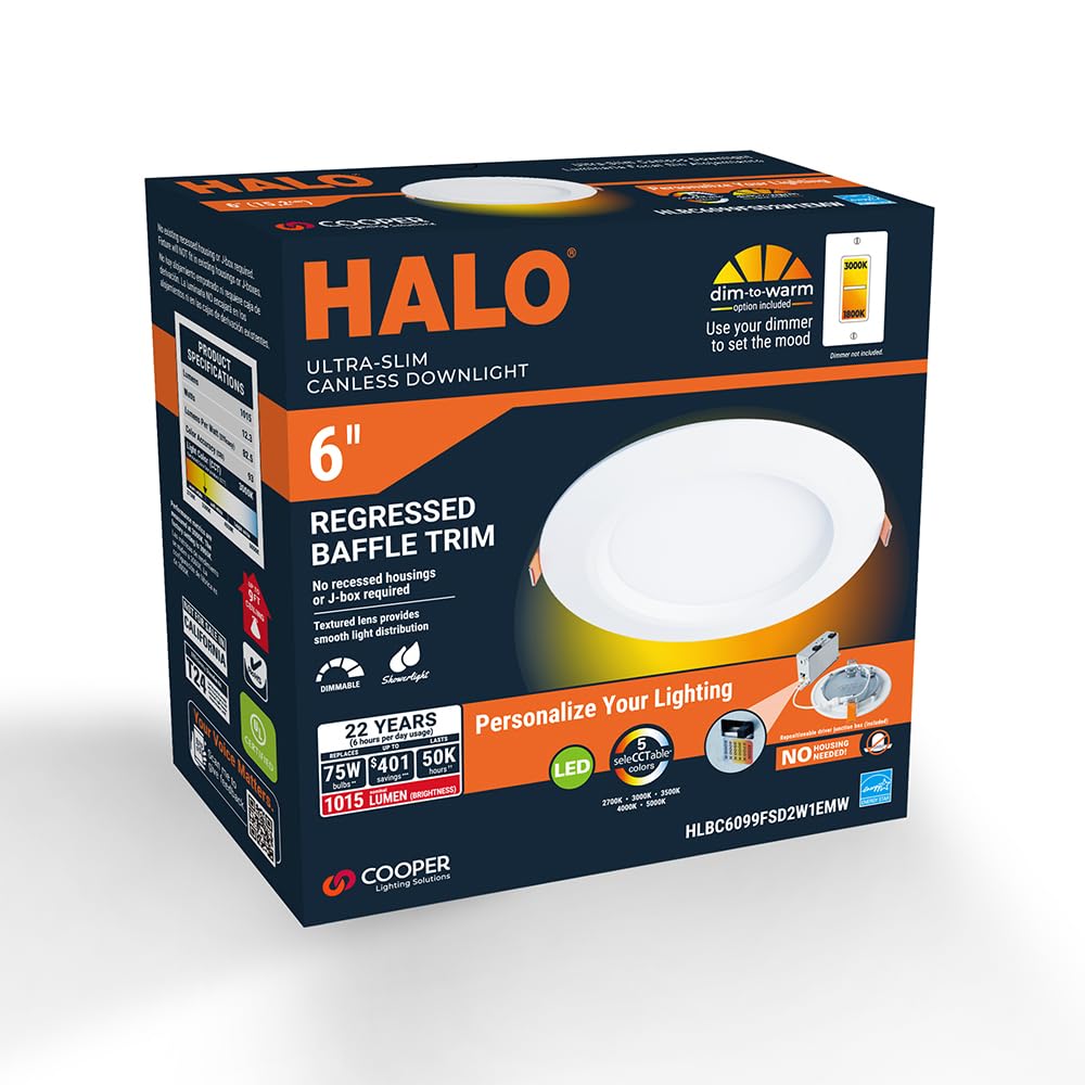 Halo Hlbc 6 Inch Ultra-Slim Regressed Led Downlight, Selectable Cct With Dim To Warm, Canless Installation