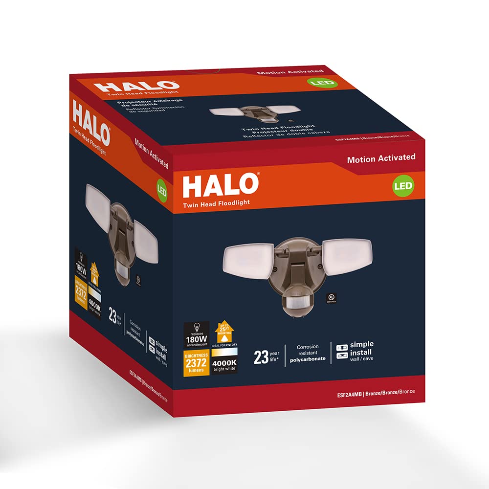 Halo Outdoor Led Flood & Security Light - Motion Activated Dusk To Dawn 2372 Lumens Bronze (Esf2A4Mb)