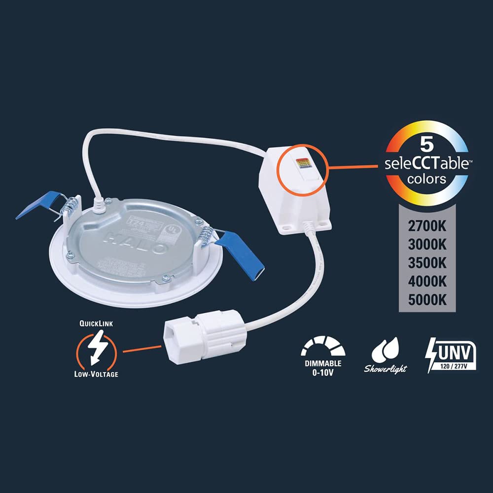 Halo Quicklink 4 Inch Canless Ultra-Thin Recessed Lighting Led Wafer Light For Ceiling And Shower - 1 Pack Add On Fixture - 640