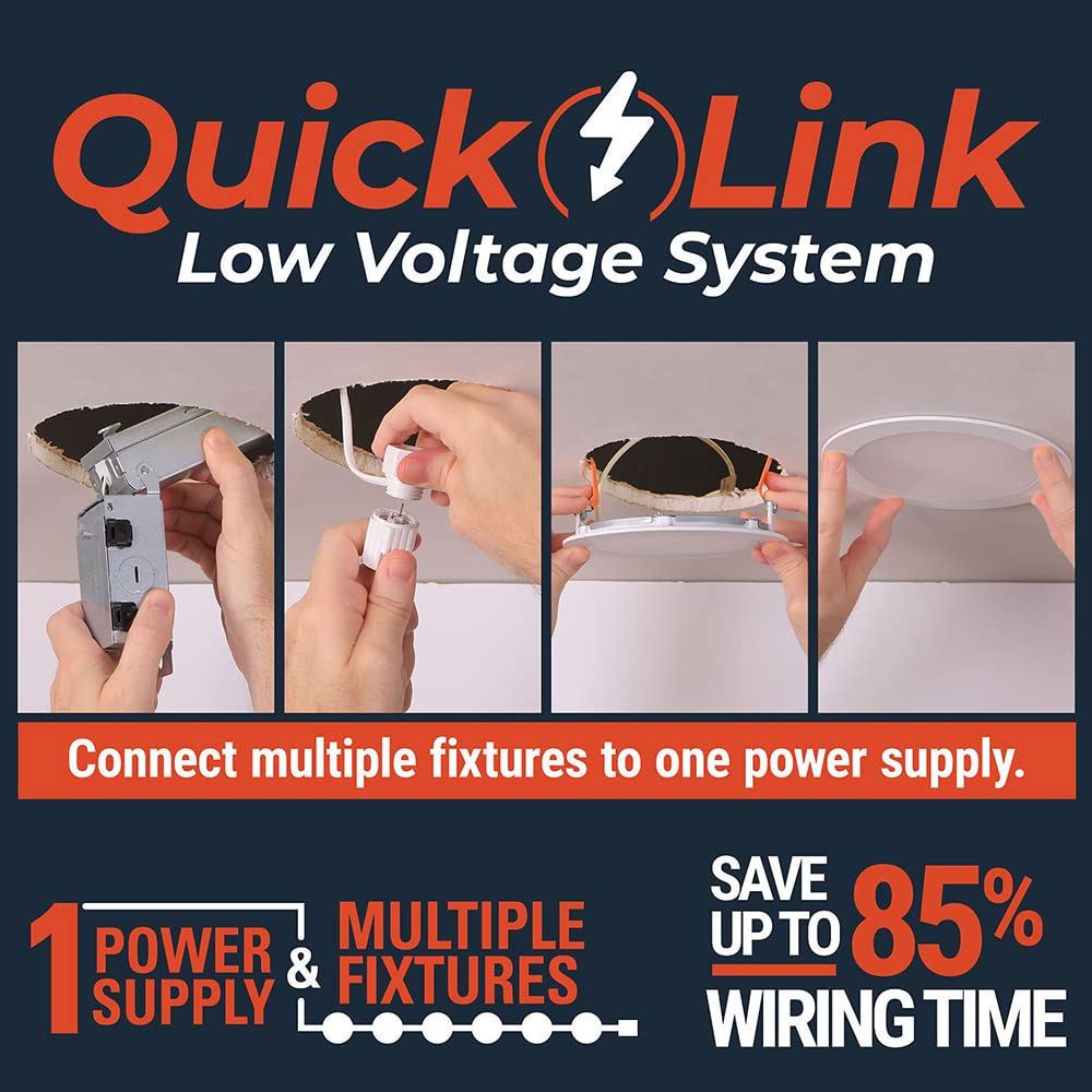 Q: How does the installation of the HALO Quicklink fixture compare to traditional downlights?A: The HALO Quicklink fixture is designed for easy installation, allowing you to install it up to 85% quicker than traditional downlights. It features QuickLink connectors for fast wiring and does not require a recessed housing or junction box.