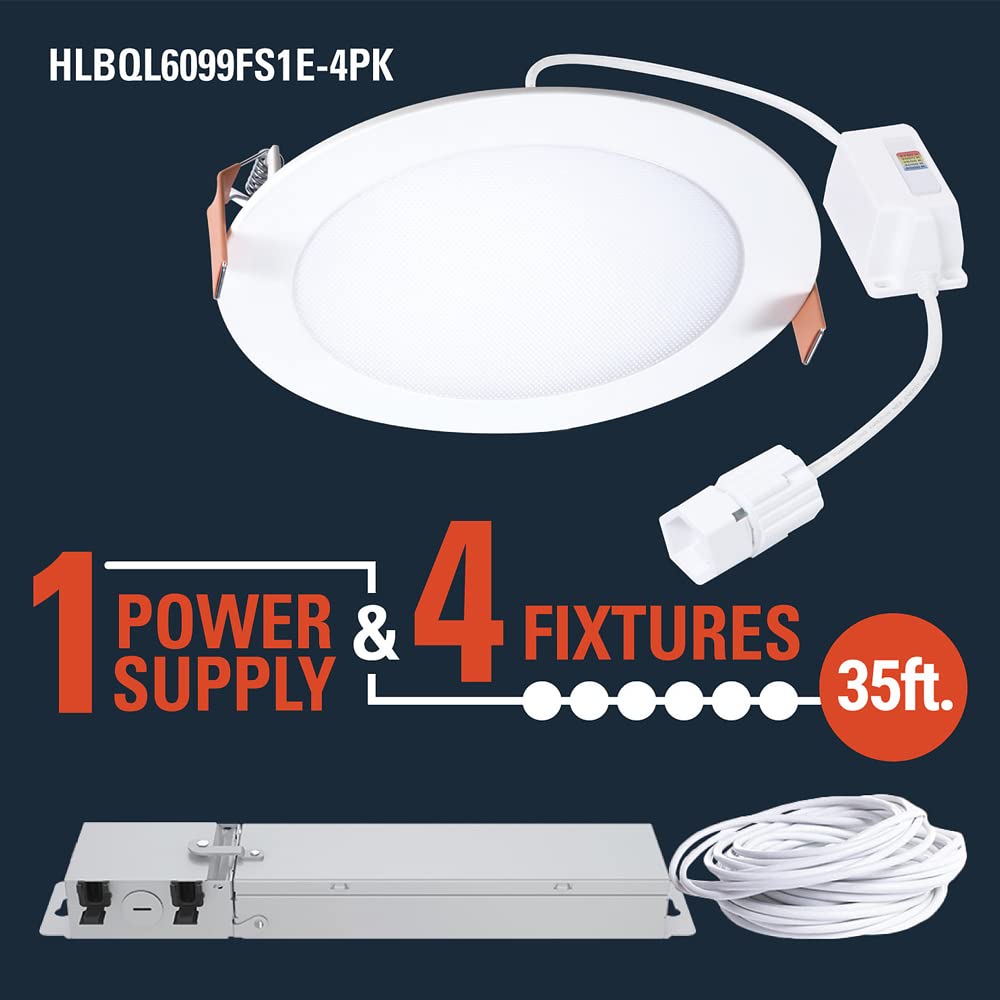 Halo Quicklink 6 Inch Canless Ultra-Thin Recessed Lighting Led Wafer Light For Ceiling And Shower - 4 Pack Starter Kit - 975 Lum