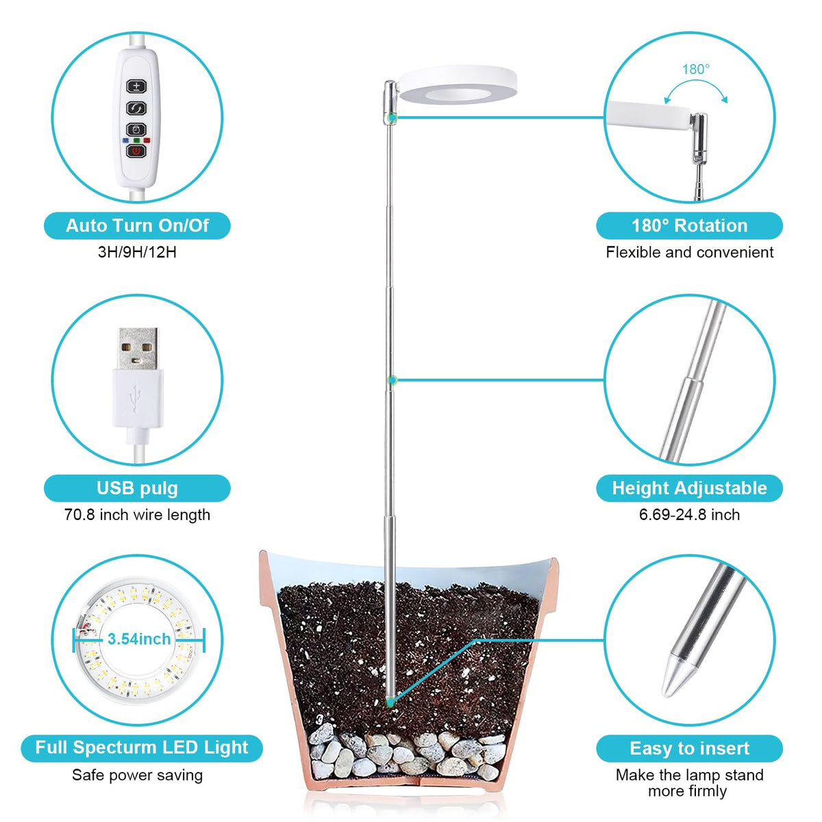Unique Halo Design: This set of 2 plant lights is ideal for small areas, ensuring your plants receive the focused light they need for vibrant growth. The stylish design fits seamlessly into any decor.