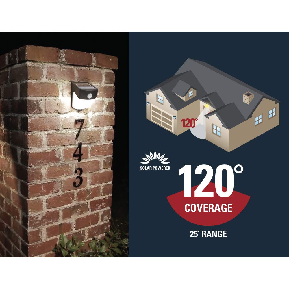 Q: How does the motion sensor work on the HALO Solar Outdoor LED Light?A: The HALO Solar Outdoor LED Light features a built-in motion sensor that detects movement within a 120-degree angle up to 25 feet away. When motion is detected, the light activates, providing security lighting when needed.