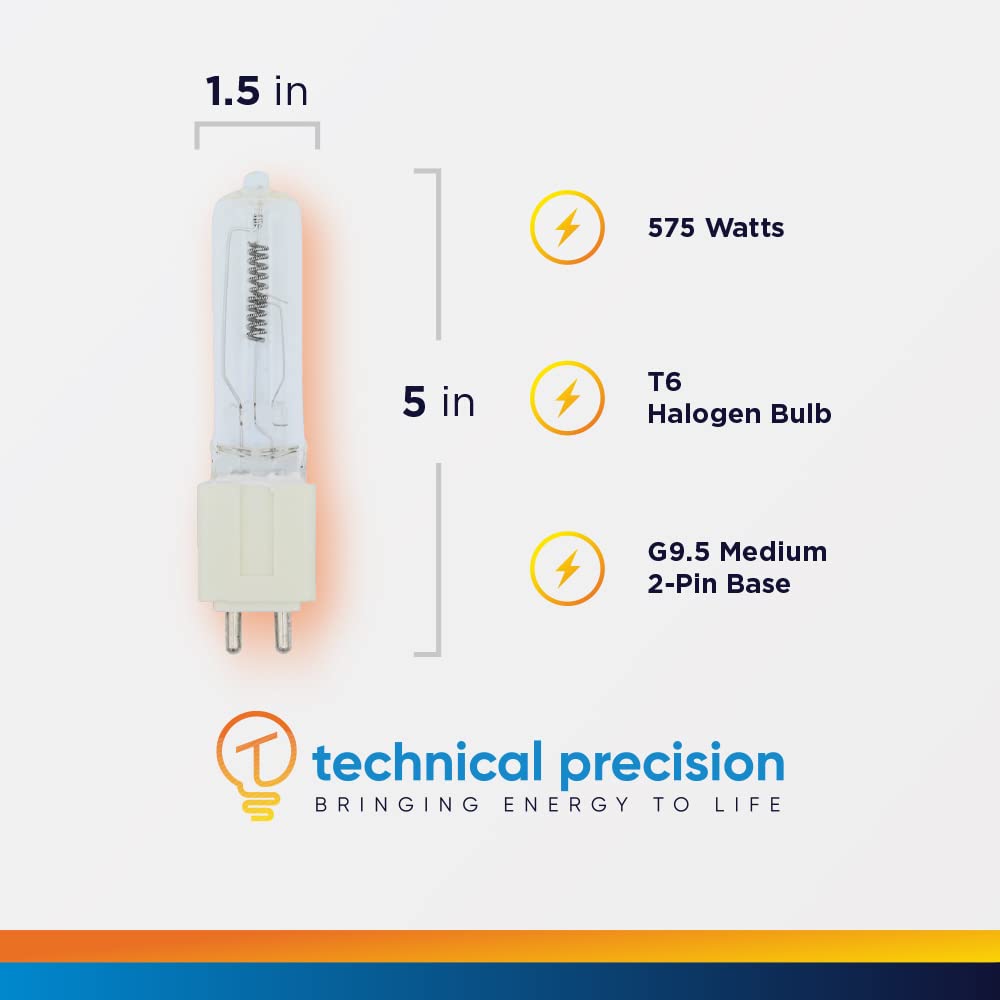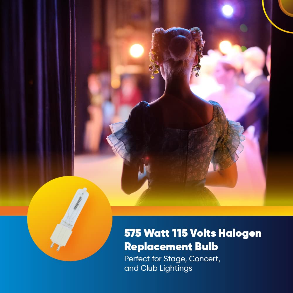 Halogen 575 Bulb For American Dj B557, Fs-1000, Opti-Par, Zb-Hx600 Lamp - Flk 575W Lamp With G9.5 Medium 2-Pin - T6 Clear Halogen Bulb - 1 Pack