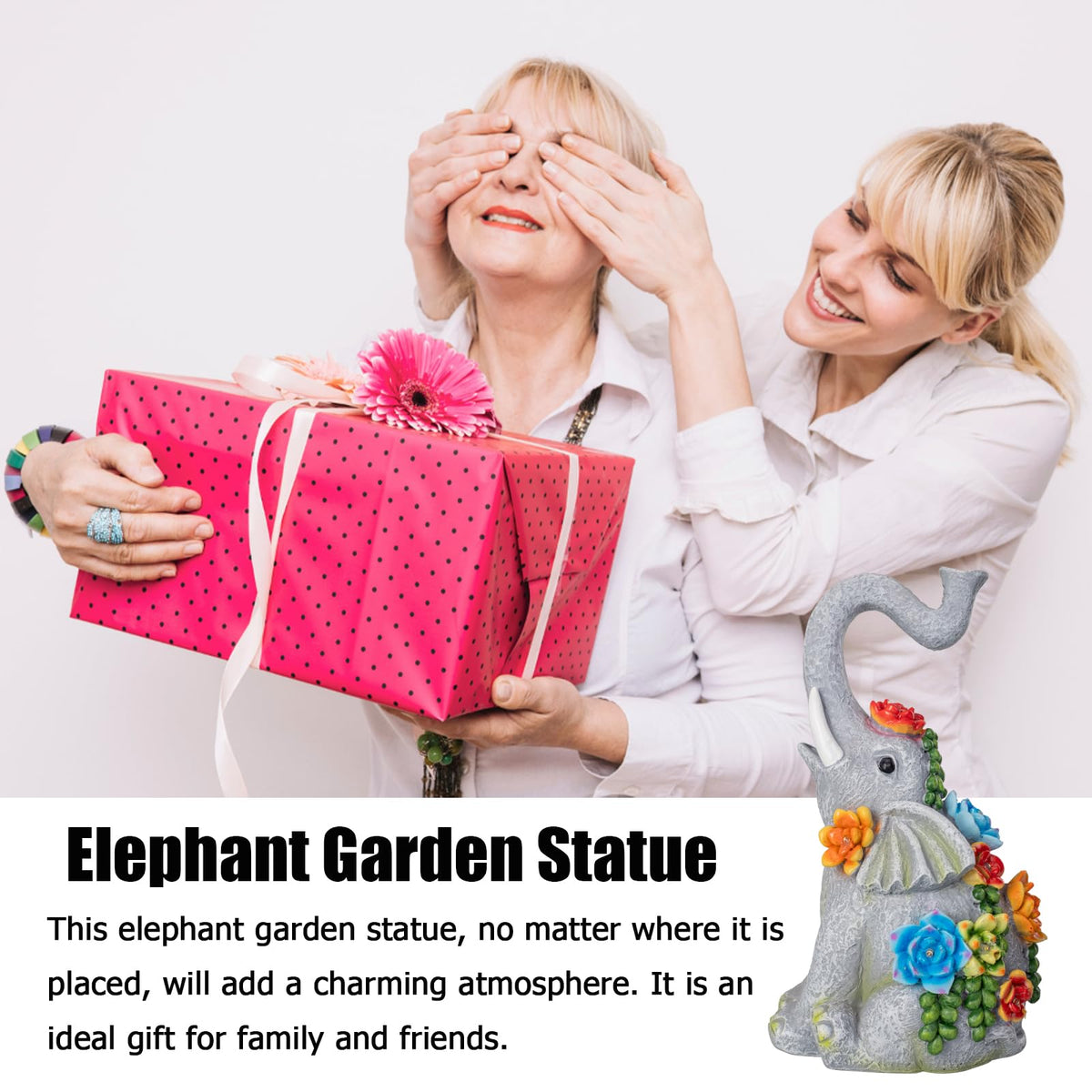 Q: What occasions is this elephant statue suitable for as a gift?A: The halp·ssfm Elephant Garden Statue makes a delightful gift for various occasions, including housewarmings, birthdays, or just because, perfect for plant lovers and home decor enthusiasts.