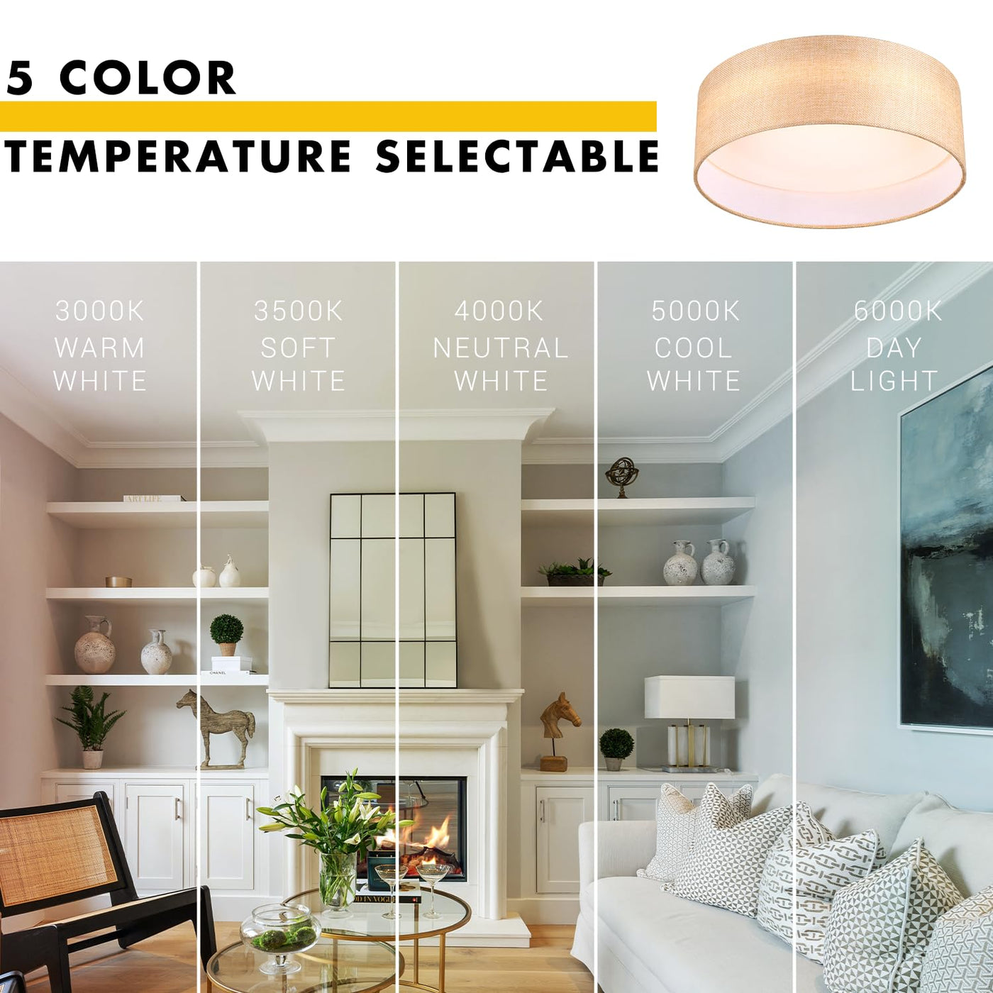 - **Sleek Modern Design**: The LED Fabric Ceiling Light features a contemporary and sleek design that complements any interior décor. The fabric shade, available in subtle colors, adds elegance to your space.