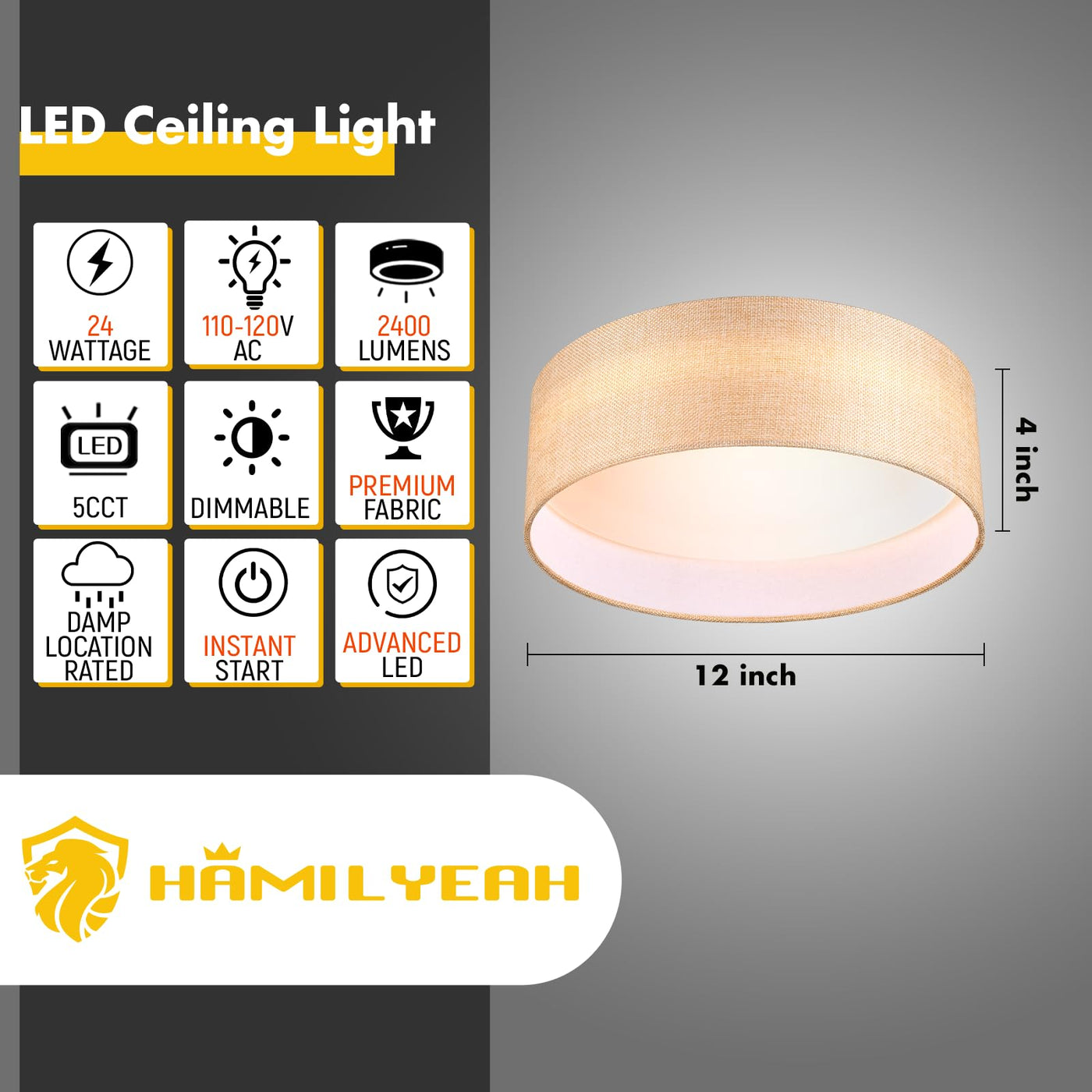 Elevate your home or office lighting with the Hamilyeah LED Fabric Ceiling Light, a sophisticated and versatile fixture that combines cutting-edge technology with timeless style. Designed to refresh any environment while saving on energy costs, this ceiling mount light is perfect for your living room, bedroom, or workspace.