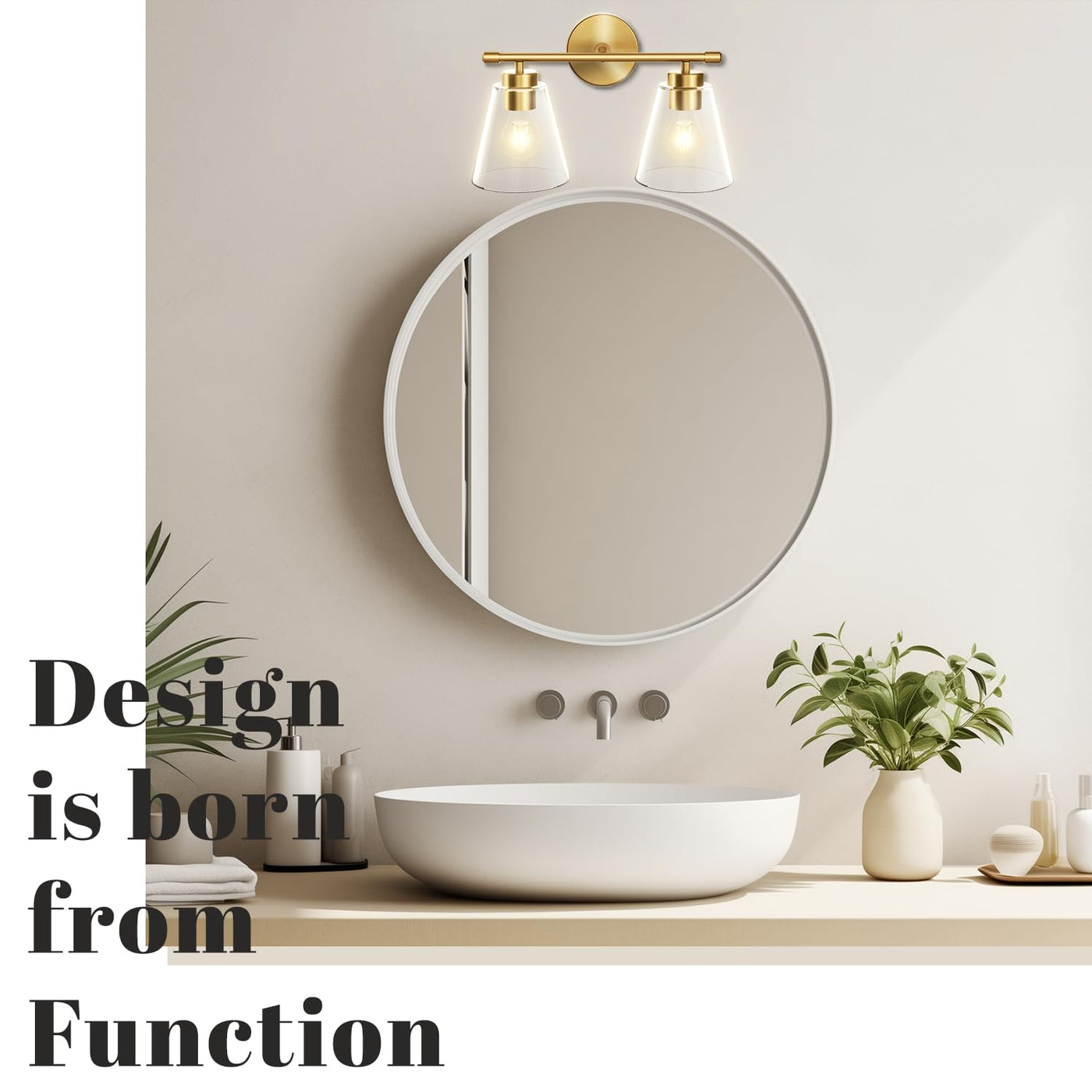 Hamilyeah Bathroom Vanity Light Fixtures Over Mirror, 2 Light Wall Light Fixture with Clear Glass Shade, Gold Sconces Wall Light