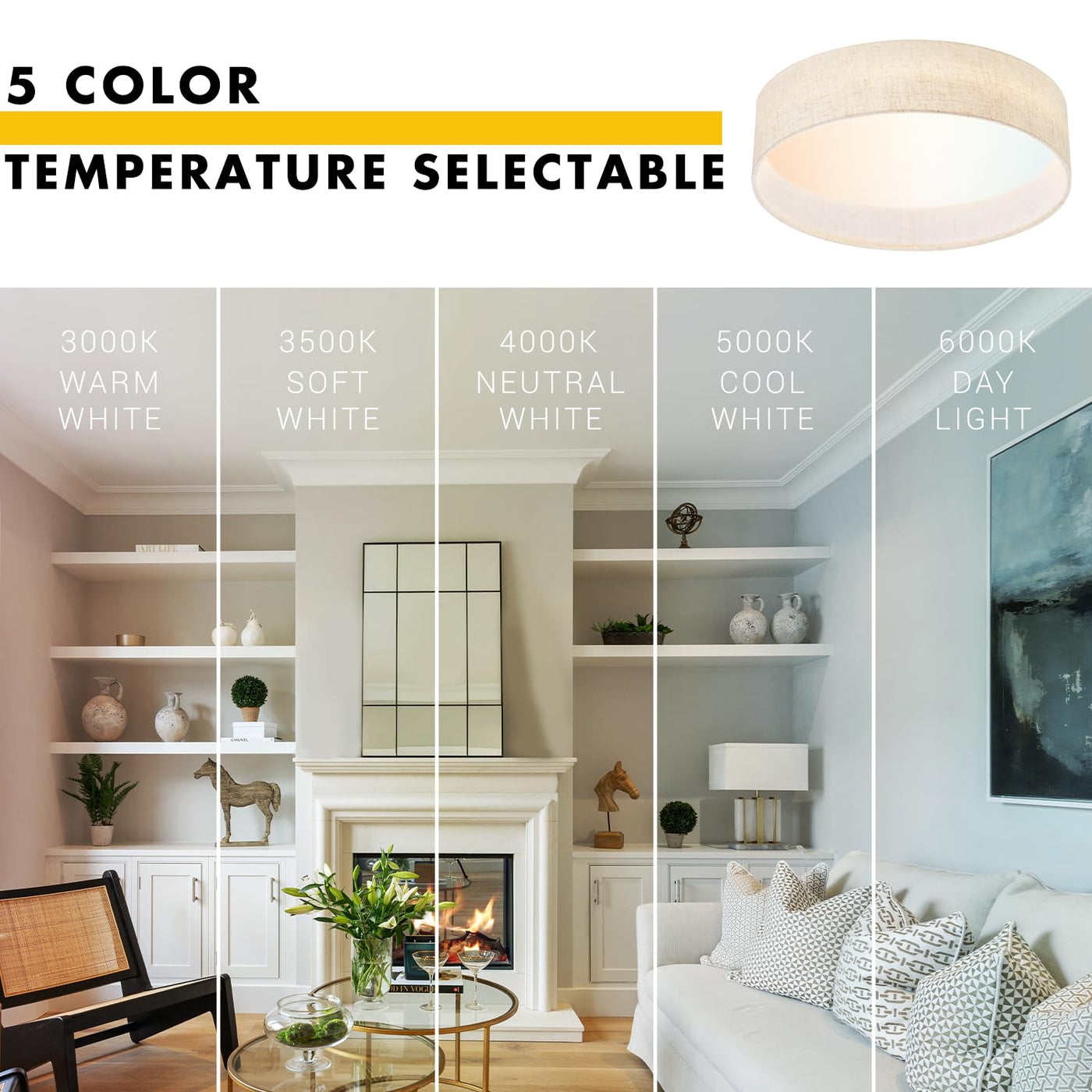 Hamilyeah Flush Mount Ceiling Light Fixture 24W, Dimmable Led Ceiling Light With Beige Fabric Shade 5Cct, 12 Inch Drum Light Fix