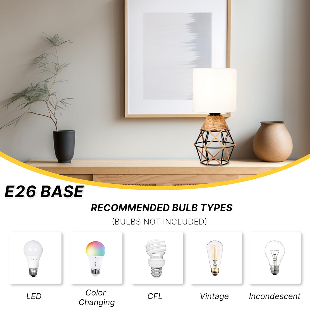 Q: What type of bulbs can I use with the Hamilyeah Table Lamps?A: The Hamilyeah Table Lamps are compatible with most E26 bulbs, allowing you to choose the perfect lighting for your space. Please note that bulbs are not included with the lamps.