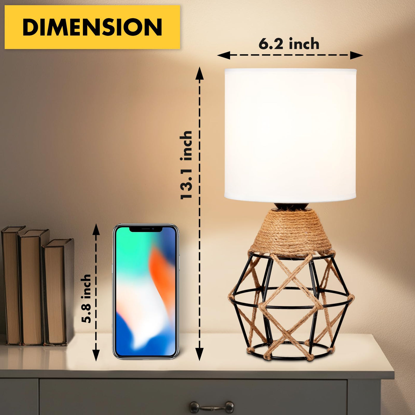 Q: What are the dimensions of the Hamilyeah Table Lamps?A: Each lamp measures 6.2 inches in length, 6.2 inches in width, and 13.1 inches in height, making them ideal for bedside tables and living room setups.