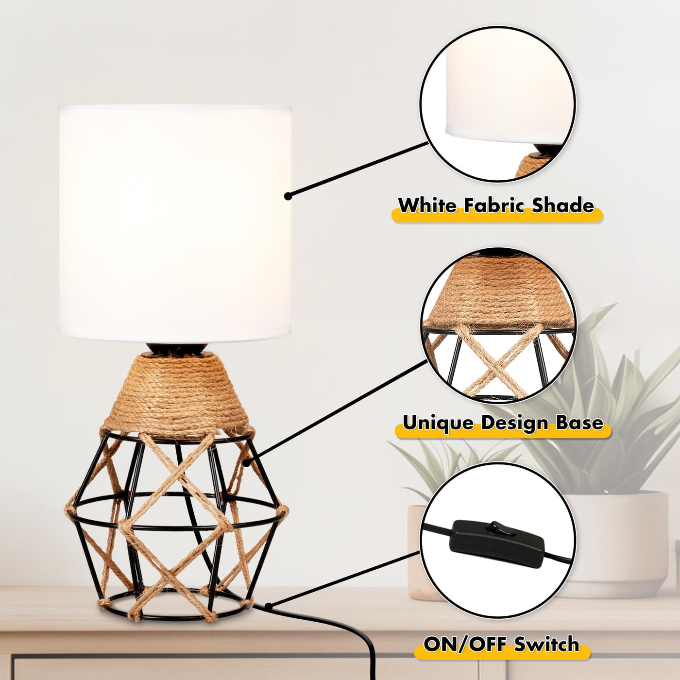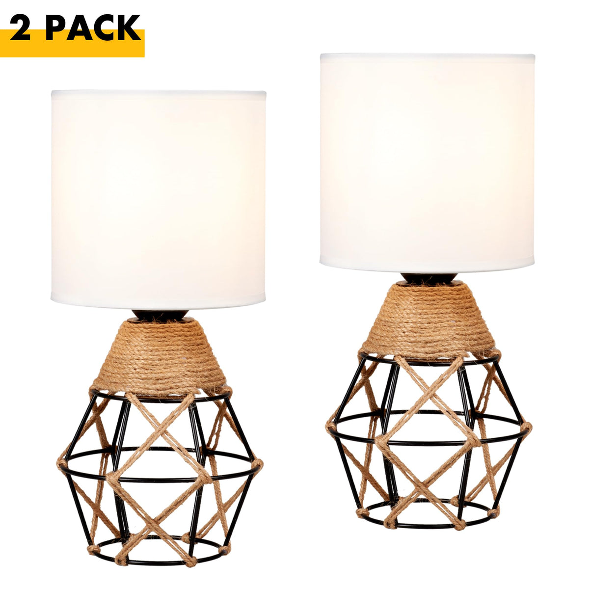 Hamilyeah Table Lamps Set Of 2, Woven Lamps For Nightstand With On/Off Switch, Farmhouse Bedside Lamps With White Fabric Shade,