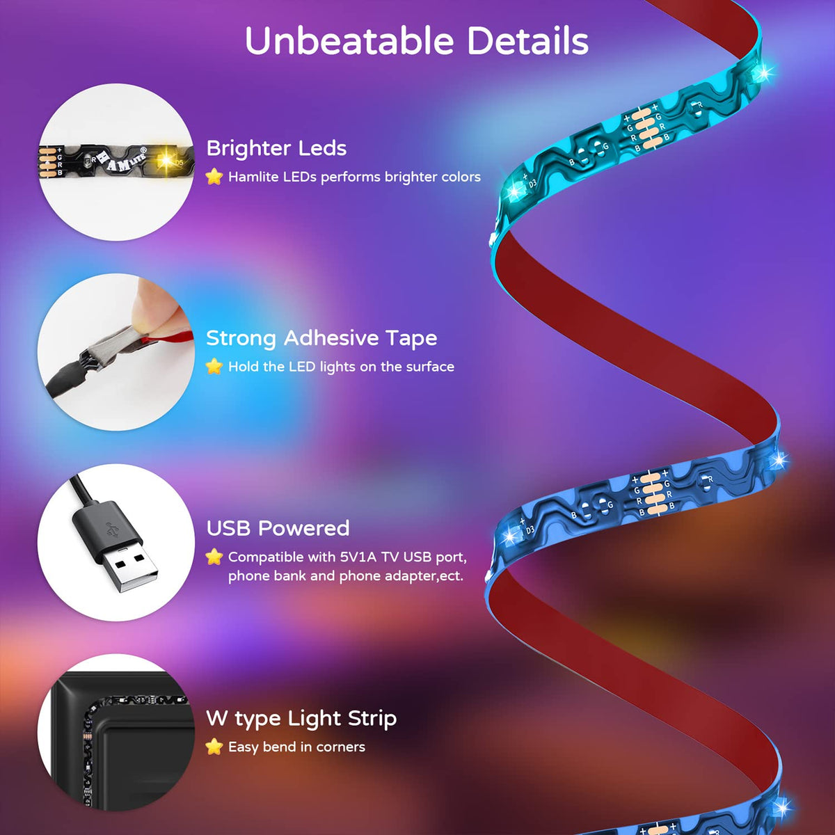 Hamlite Tv Backlight 55 Inch, 11.5Ft Led Strip Lights Usb Powered With Remote -Curve Design Sync On/Off With Tv, Changing Led Ba