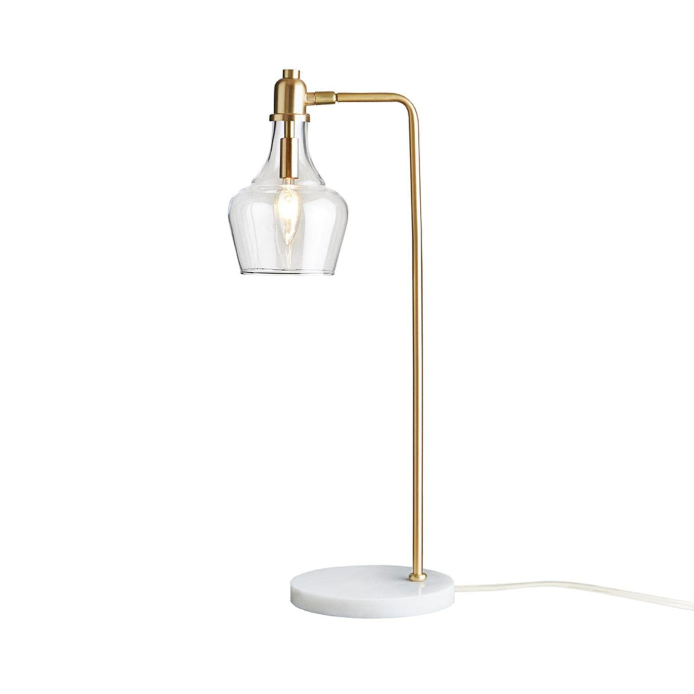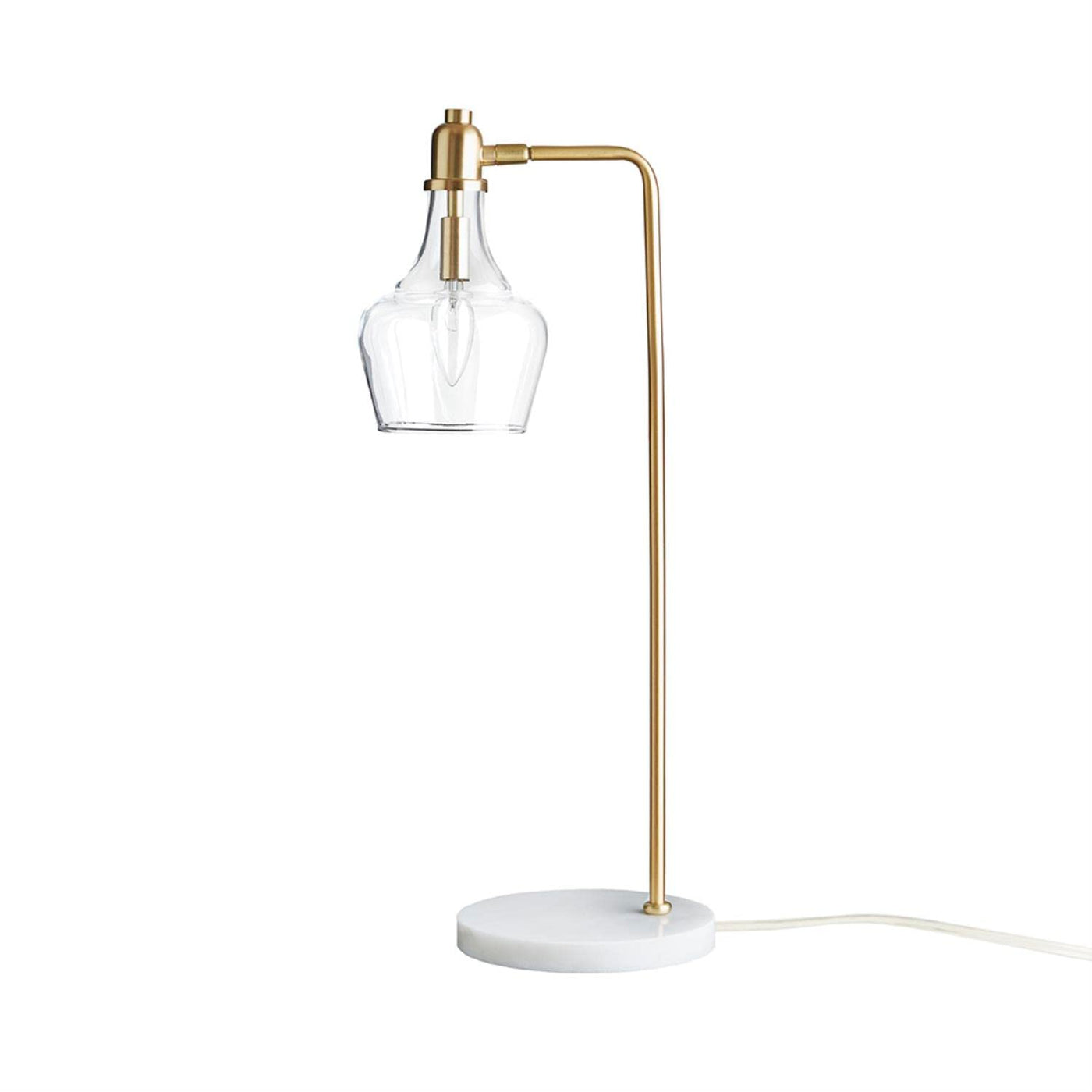 24 H Table Lamp with Marble BaseFeaturesSee below1 Table Lamp:9.75W x 7.5D x 24HShade Size:Dia. 5.5 x 7HSocket Size:Dia. 1 x 2HCord Length:60Pattern Name: AuburnColor: GoldStyle: Modern, ContemporaryMaterial: Material: 40% iron,35% marble,25% glass, Base Material: 100% marble, Shade Material: 100% glass, Base Finish: Marble whiteMade In China