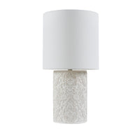 Elevate your decor with the elegance of the Hampton Hill Ashbourne Embossed Floral Resin Table Lamp. Flaunting a beautifully intricate embossed floral design, this ivory table lamp is crafted from resin with a slightly distressed finish. Paired with a coordinating off-white cylinder shade, the elegant table lamp brings a modern appeal that complements a variety of interior styles. A 3-way rotary switch allows you to dim the light to create the perfect ambience. Place this floral table lamp in your living room, bedroom, or entryway to give your space a simple, yet refined touch. Includes a 60" clear power cord and requires 1 Type A light bulb (9W LED light bulb included). Spot clean only.